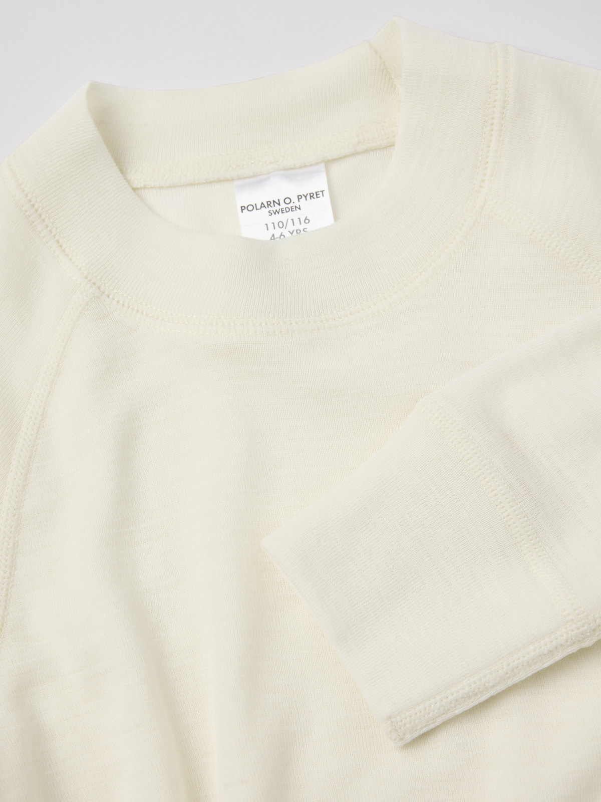 Tröja i mjuk och värmande merinoull – perfekt som förstalager närmast kroppen. Merinoullen värmer även i blött tillstånd och hjälper till att reglera kroppstemperaturen. Tröjan är sydd med extra mjuka sömmar och passar perfekt tillsammans med tillhörande byxor som underställ under kalla vinterdagar.