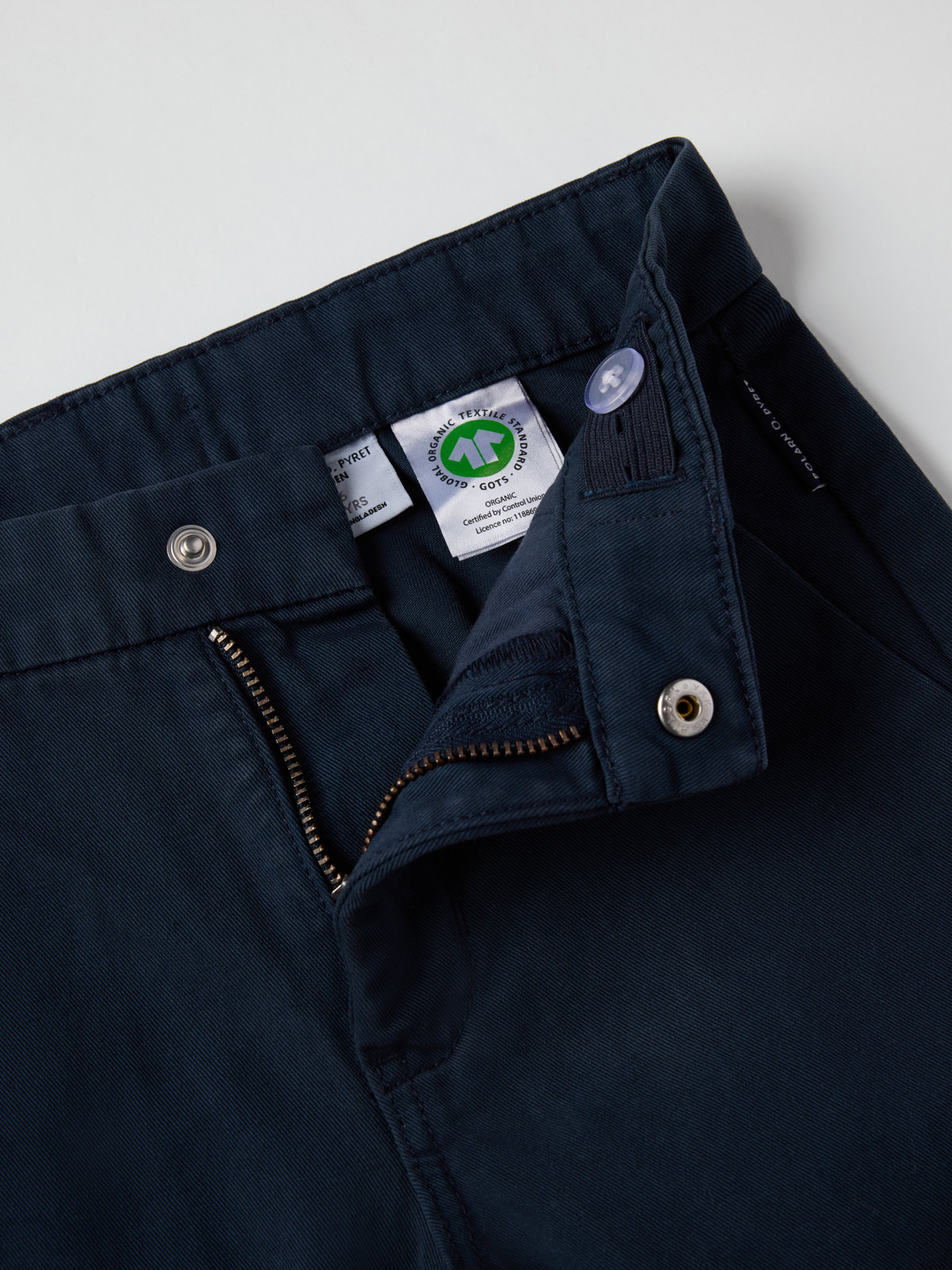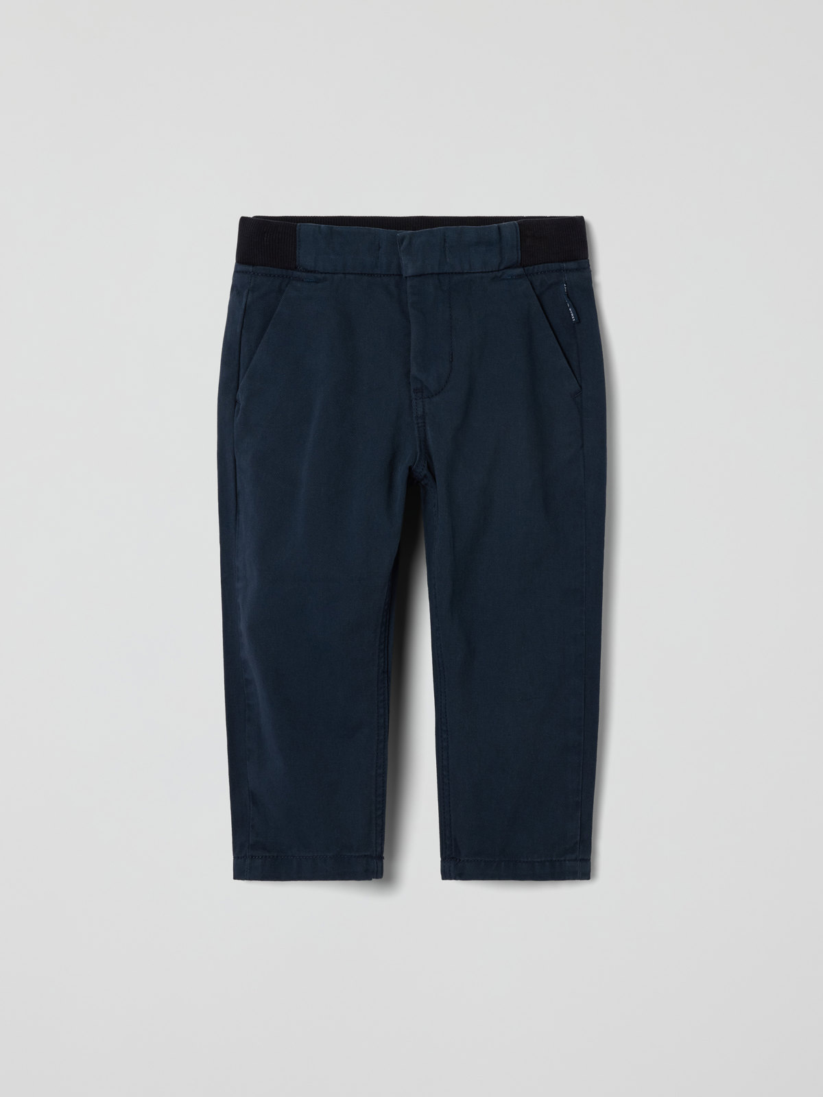 Chinos i vävd ekologisk bomull – perfekta byxan till både vardag och fest! Byxan har två fickor fram och en bakficka, samt elastisk midja som justeras med knapphålsresår.