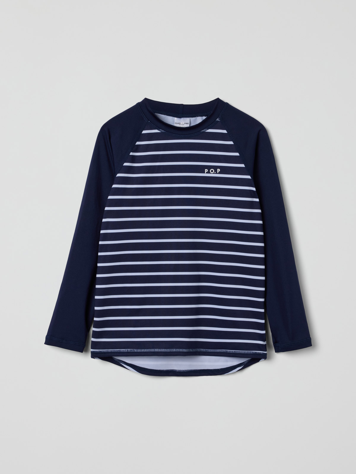 Långärmad badtröja i ett återvunnet tyg med UV-skydd. Tröjan är sydd med extra mjuka sömmar som inte skaver. UPF 50 (Ultraviolett Protection Factor) innebär ett 98 procentigt skydd mot de farliga UV-strålarna.