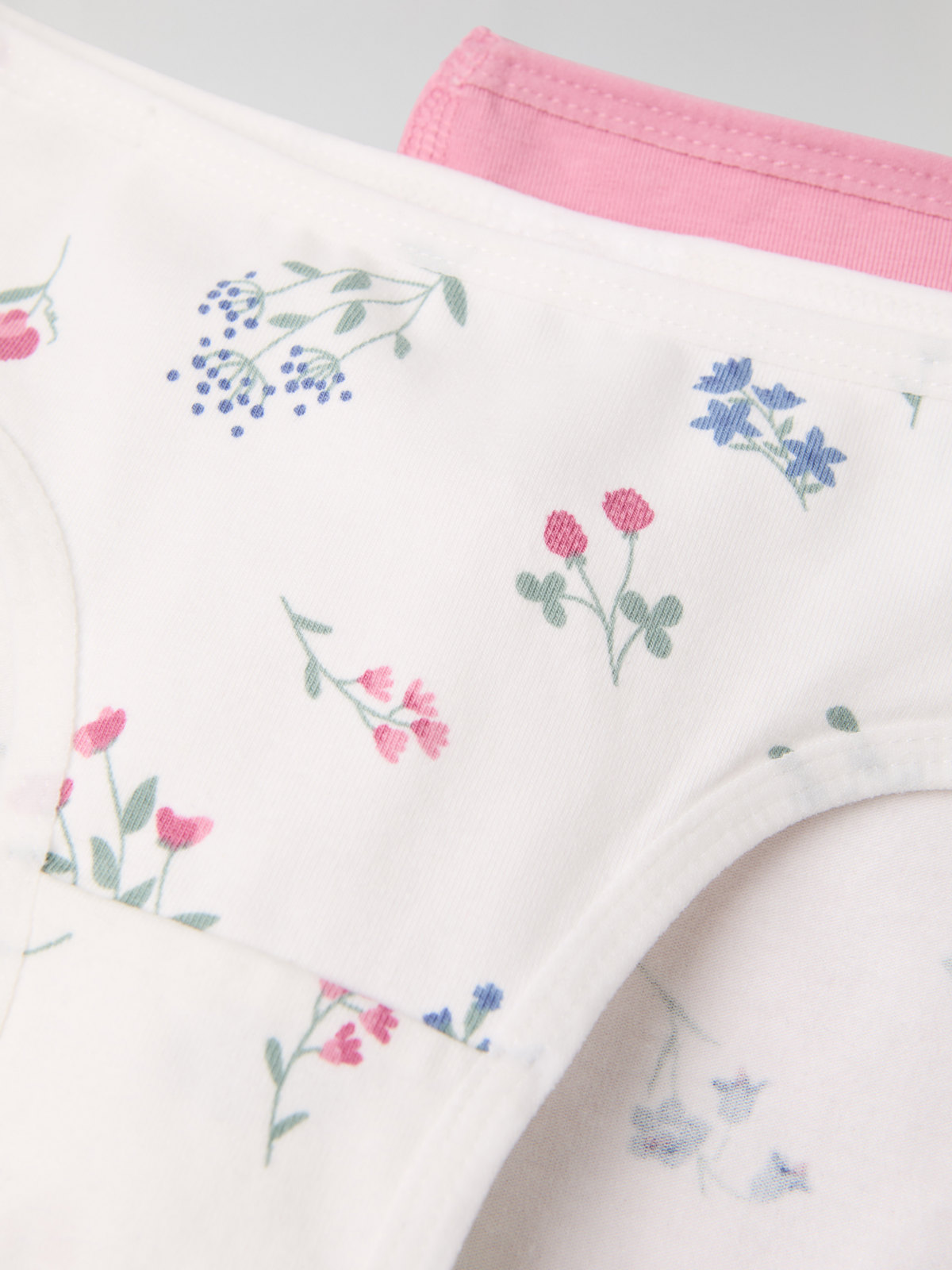 Trosa i mjuk ekologisk bomull, helmönstrade med blommor. Trosorna är sydda med extra mjuka sömmar som inte skaver.