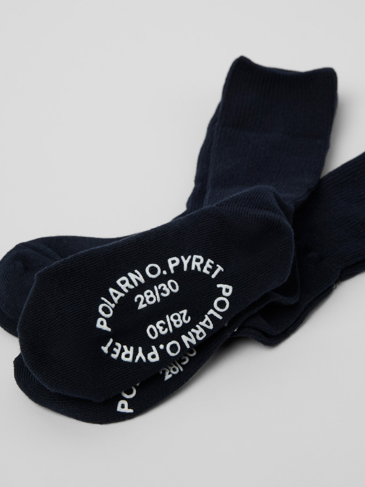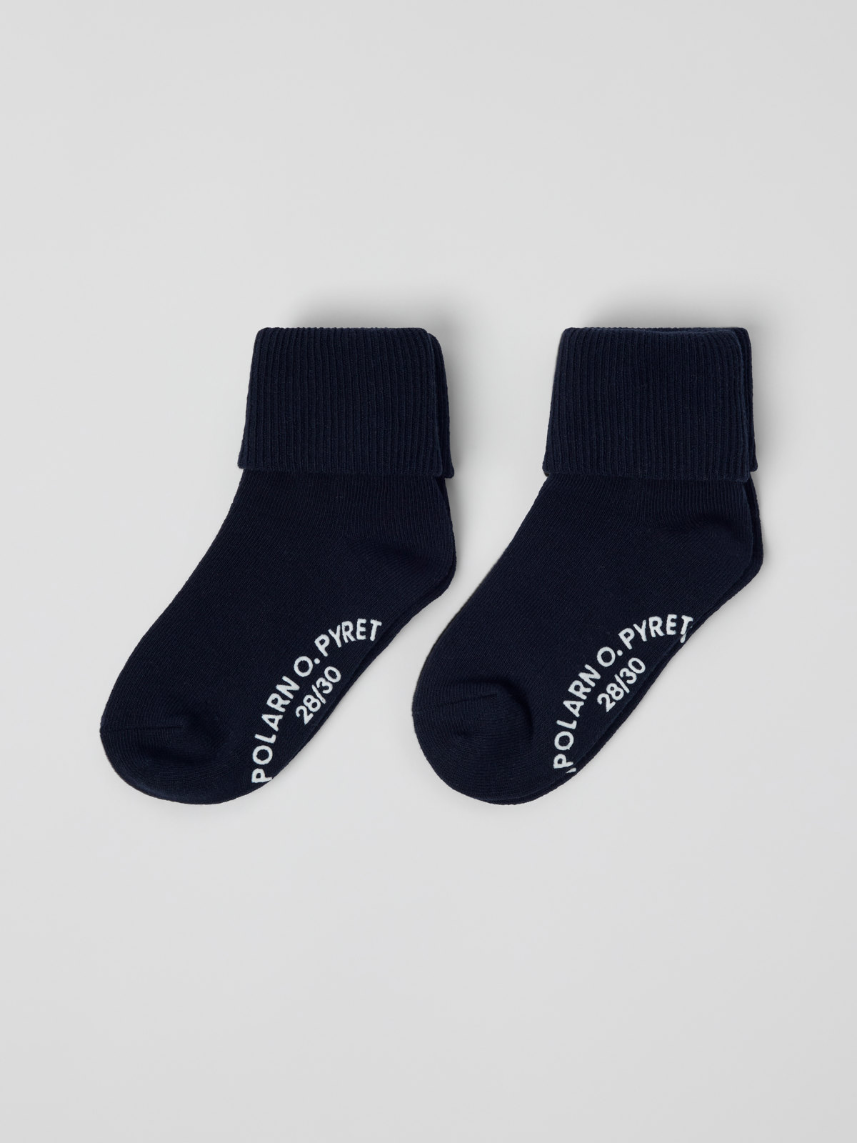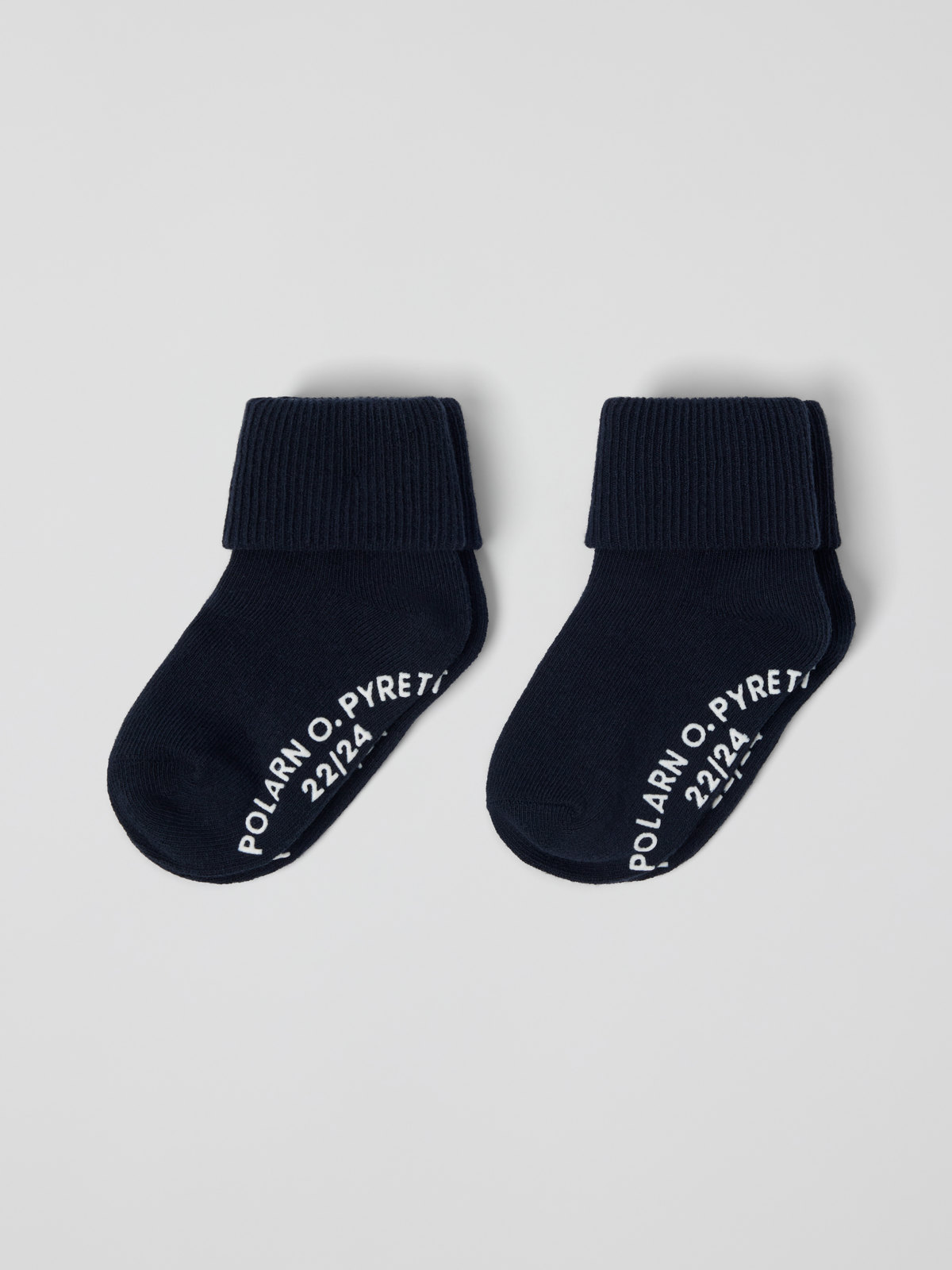 Tvåpack strumpor med halkskydd. Strumporna är tillverkade i mjuk ekologisk bomull och har en mudd som kan vikas upp eller ned. Den här produkten ingår i vårt 3 för 2-erbjudande, som ej kan kombineras med andra erbjudanden.