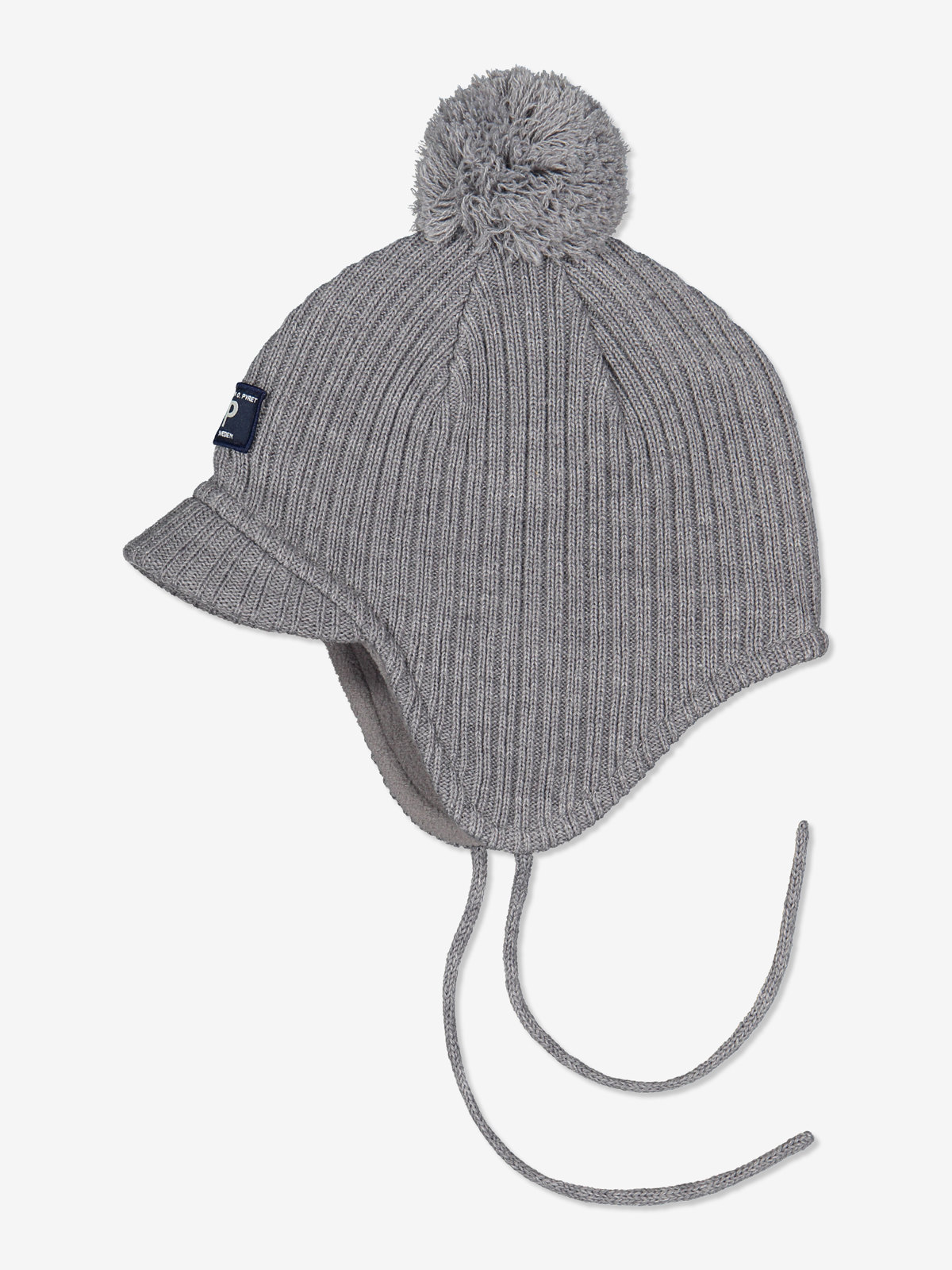 Ribbstickad mössa i varm ull med mjukt fleecefoder av återvunnen polyester. Framtill har mössan en skärm som ger ett skönt skydd mot väder vind. De minsta storlekarna har knytband under hakan som håller mössan på plats.