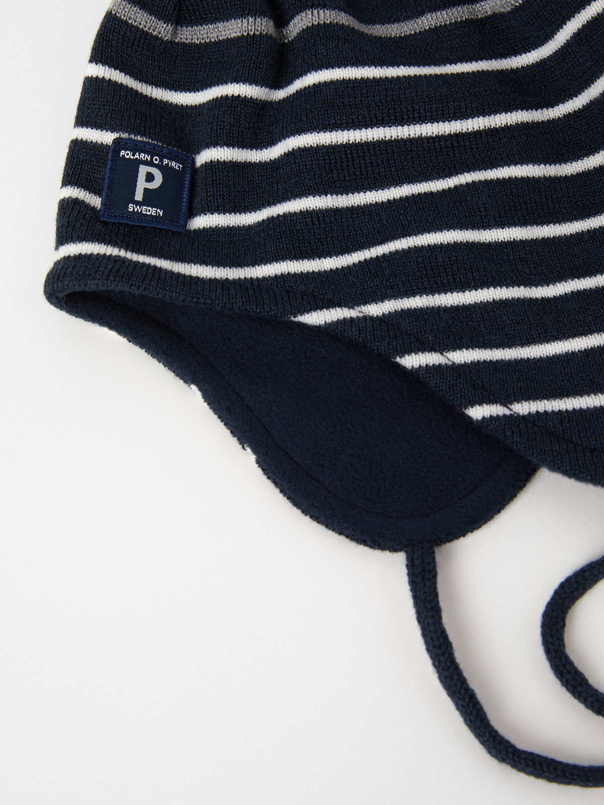 Randig hjälmmössa i värmande ullmix. Mössan är vindtät och går ned ordentligt över öronen. Den har även ett mjukt fleecefoder och är försedd med en reflexrand som syns bra i mörker. Knytbanden under hakan håller mössan på plats. Storlek 52/54 har inga knytband. Ull håller värmen även i blött tillstånd.