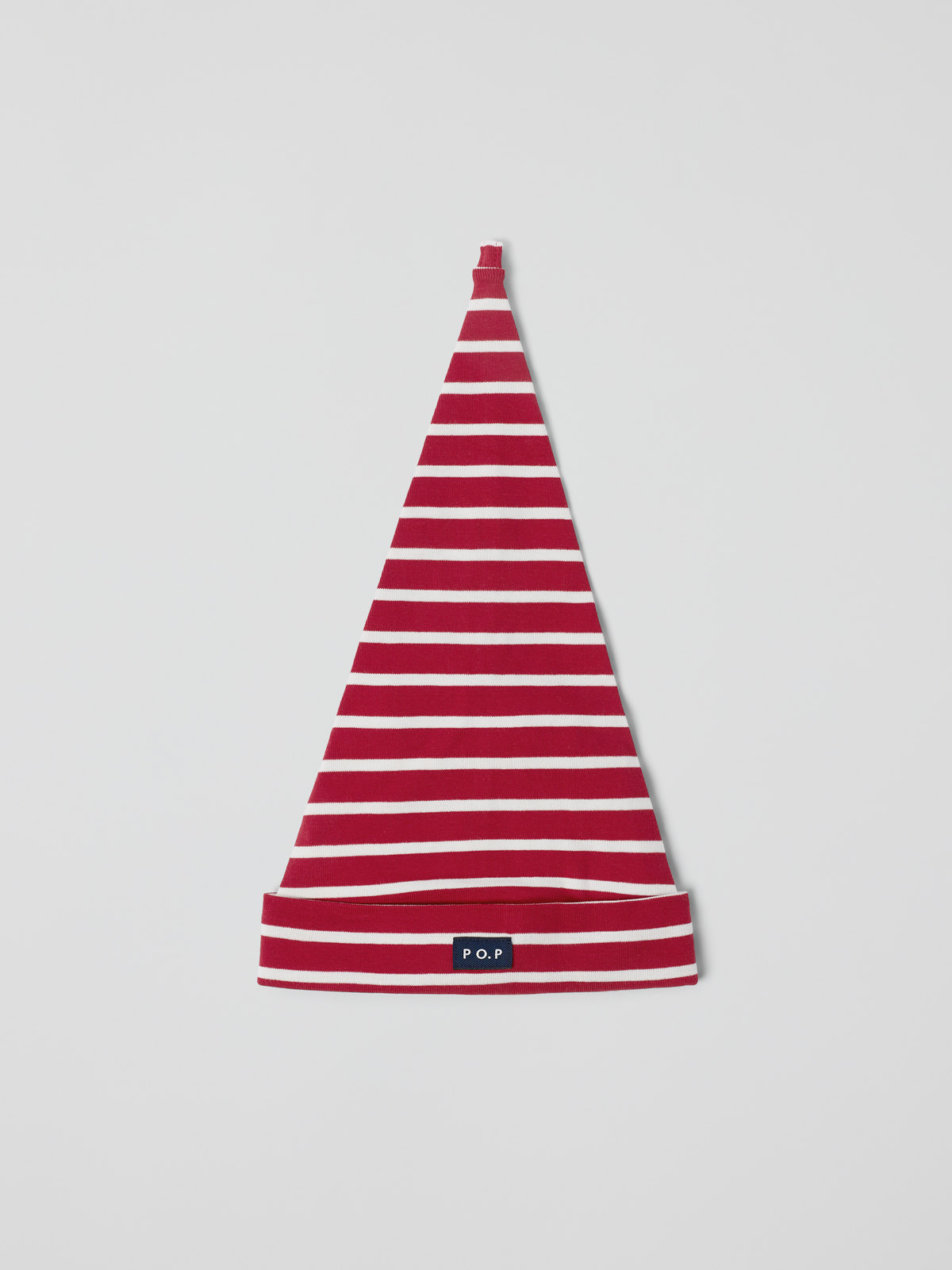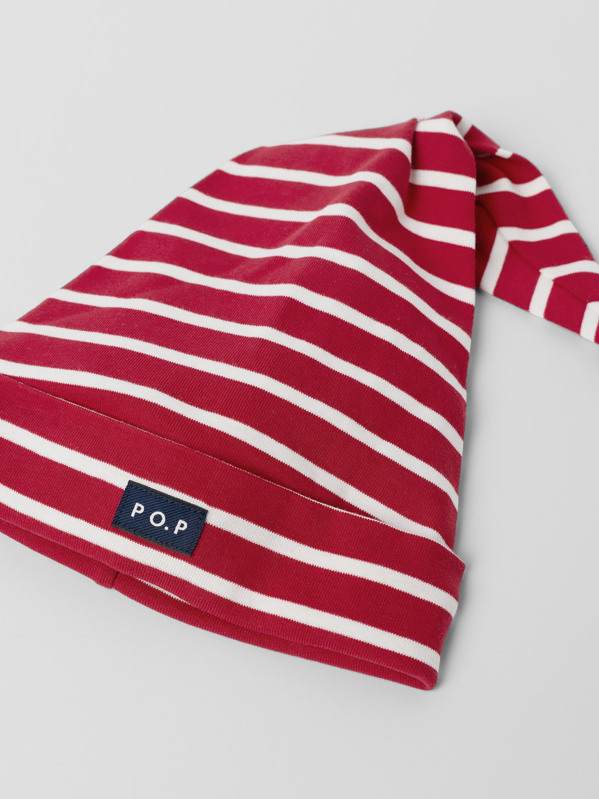 Randig tomteluva i tunn och stretchig trikå av 100% ekologisk bomull – kul till jul! Tomteluvan har ett mjukt uppvik i nederkant för skön passform.