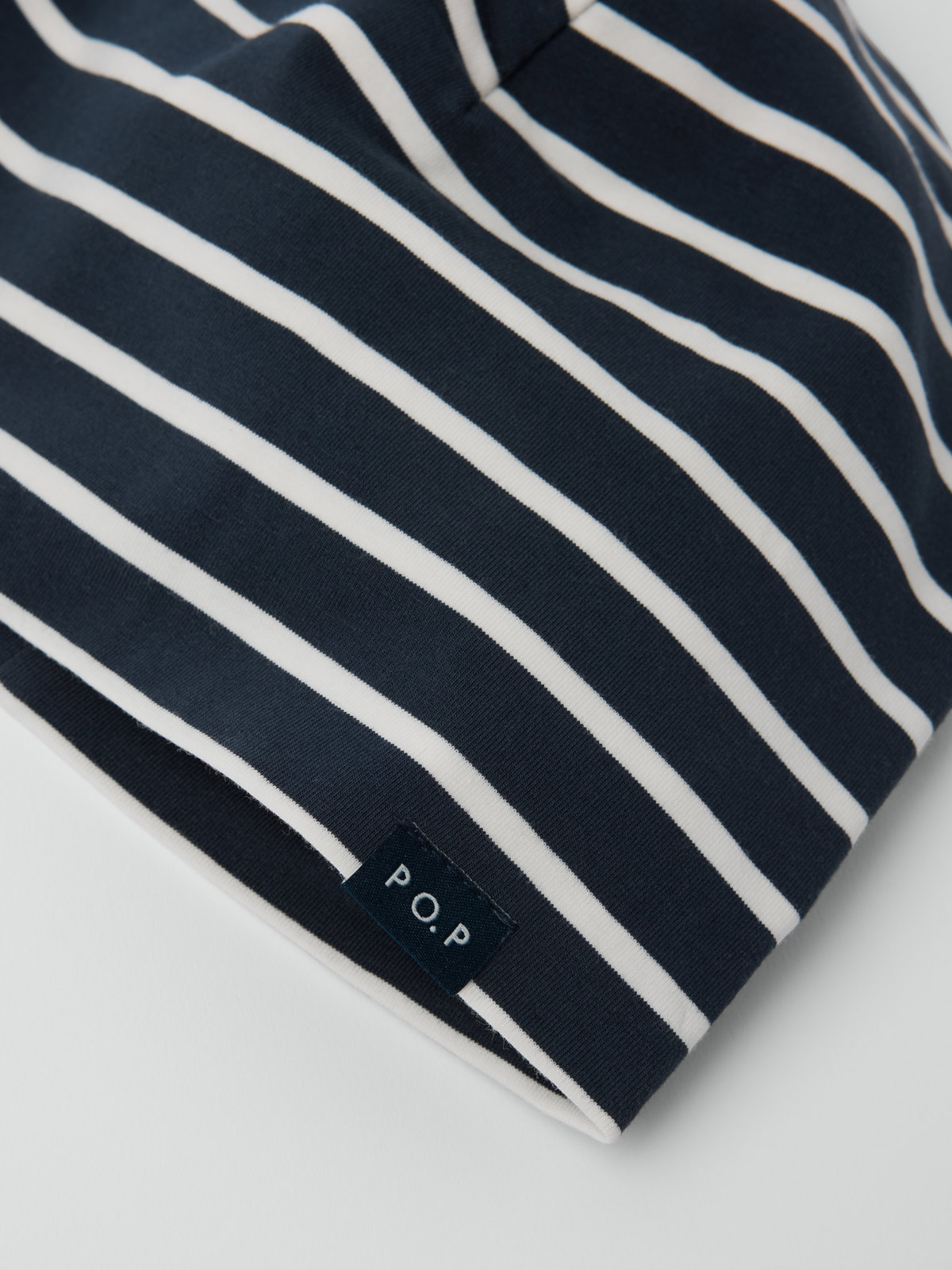 Tunn, klassiskt randig mössa i mjuk ekologisk bomullstrikå. Perfekt att ha på vårens och höstens alla utomhusaktiviteter och under hjälmen!