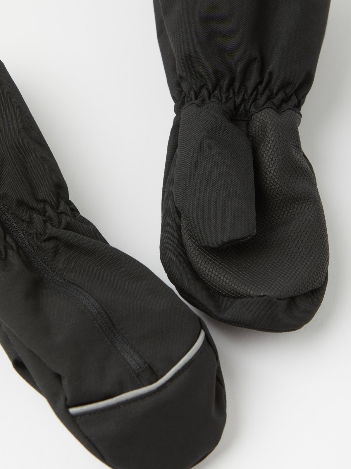 Vindtäta tumvantar i vattentätt material med lång, praktisk dragkedja för enkel på- och avtagning.