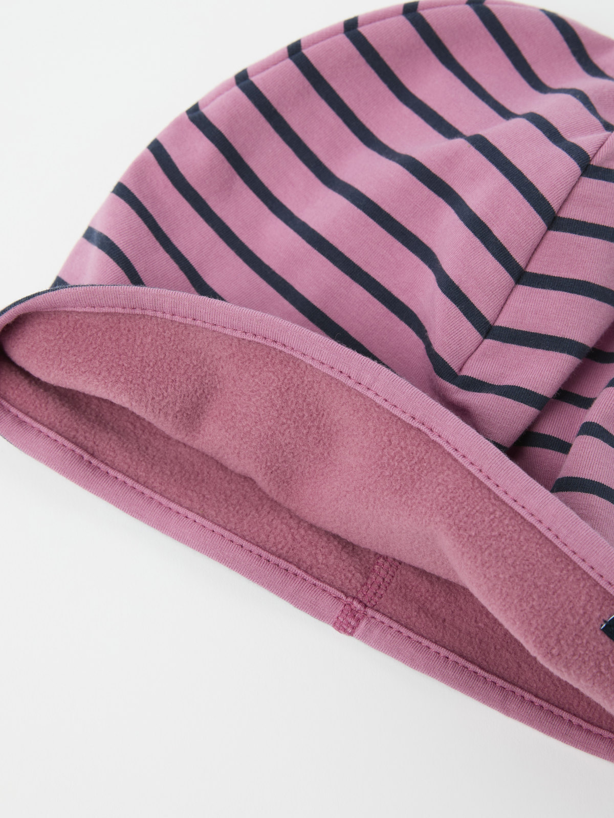 Randig mössa i mjuk ekologisk bomull. Mössan har vår klassiska rand och är fodrad med värmande fleece av återvunnen polyester – perfekt för de lite kyligare dagarna.