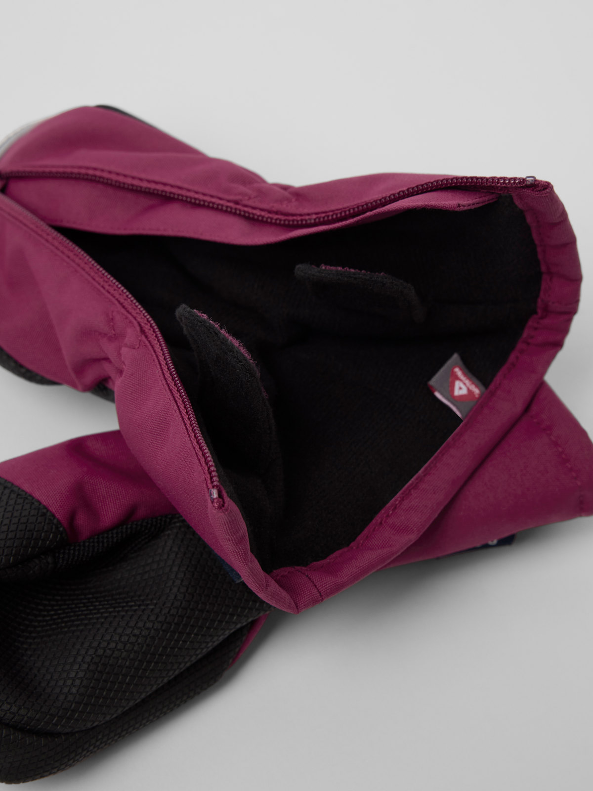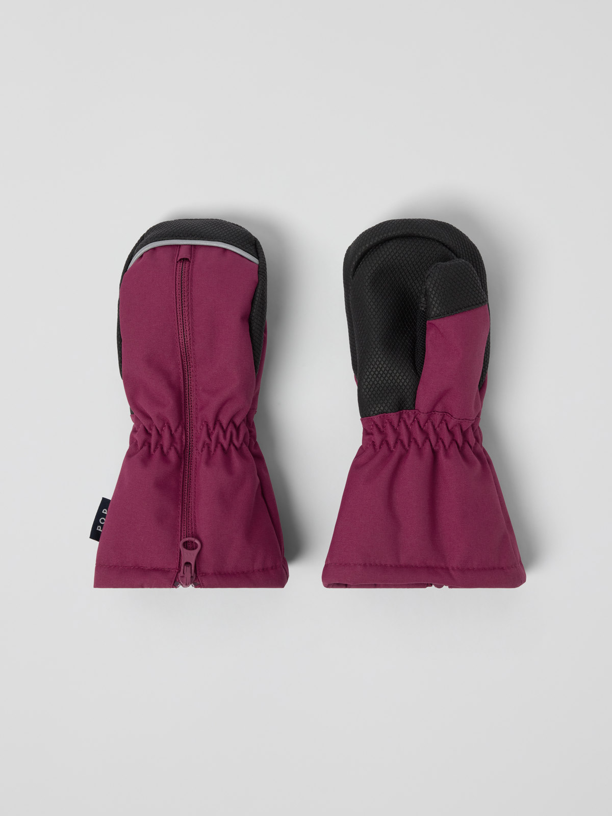 Enfärgade vantar i vind- och vattentätt material med värmande vaddering och smart dragkedja – supersmidiga att ta på och av!