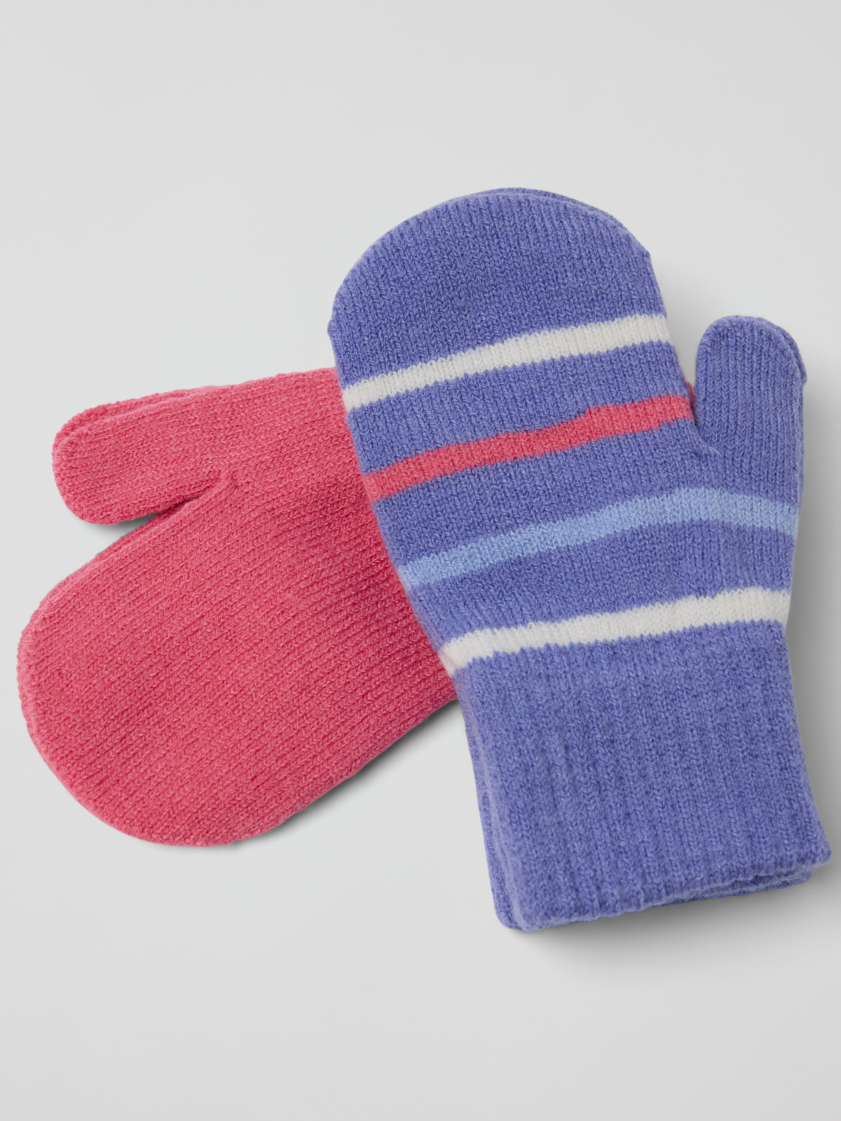 Fyll på med två par sköna stickade tumvantar inför äventyren! Vantarna är tillverkade av återvunnen polyester som töjer sig efter handens storlek. Den mjuka mudden ger en skön passform.