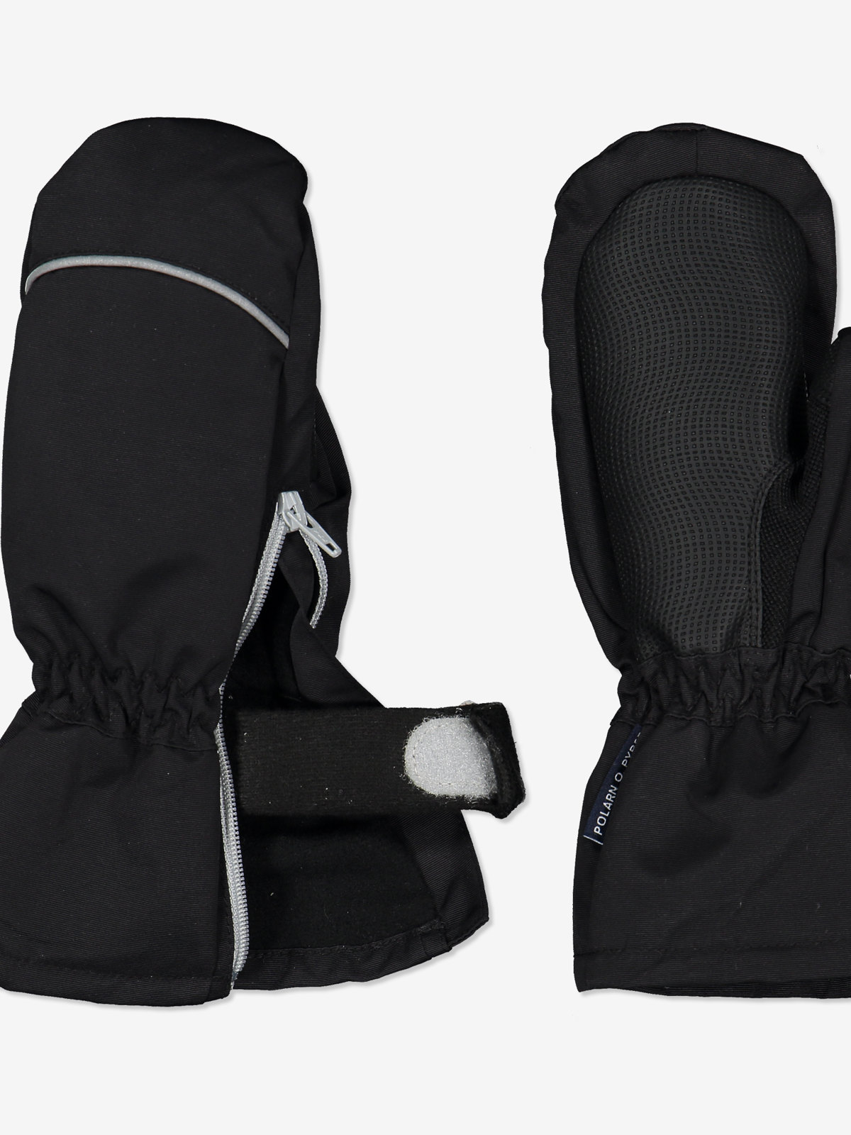 Vindtäta skalvantar. Vantarna har en dragkedja på sidan som förenklar av- och påtagning. De har tydliga reflexer på ovansidan, samt förstärkningarna på insidan av handflatan, som gör vantarna lätta att greppa med. På insidan av vantarna finns ett elastiskt band i mjuk fleece som går att knäppa runt handleden med karborreband så vantarna sitter på plats. Vantarna tillverkas i två utföranden, välj mellan en enfärgad eller en blommönstrad.