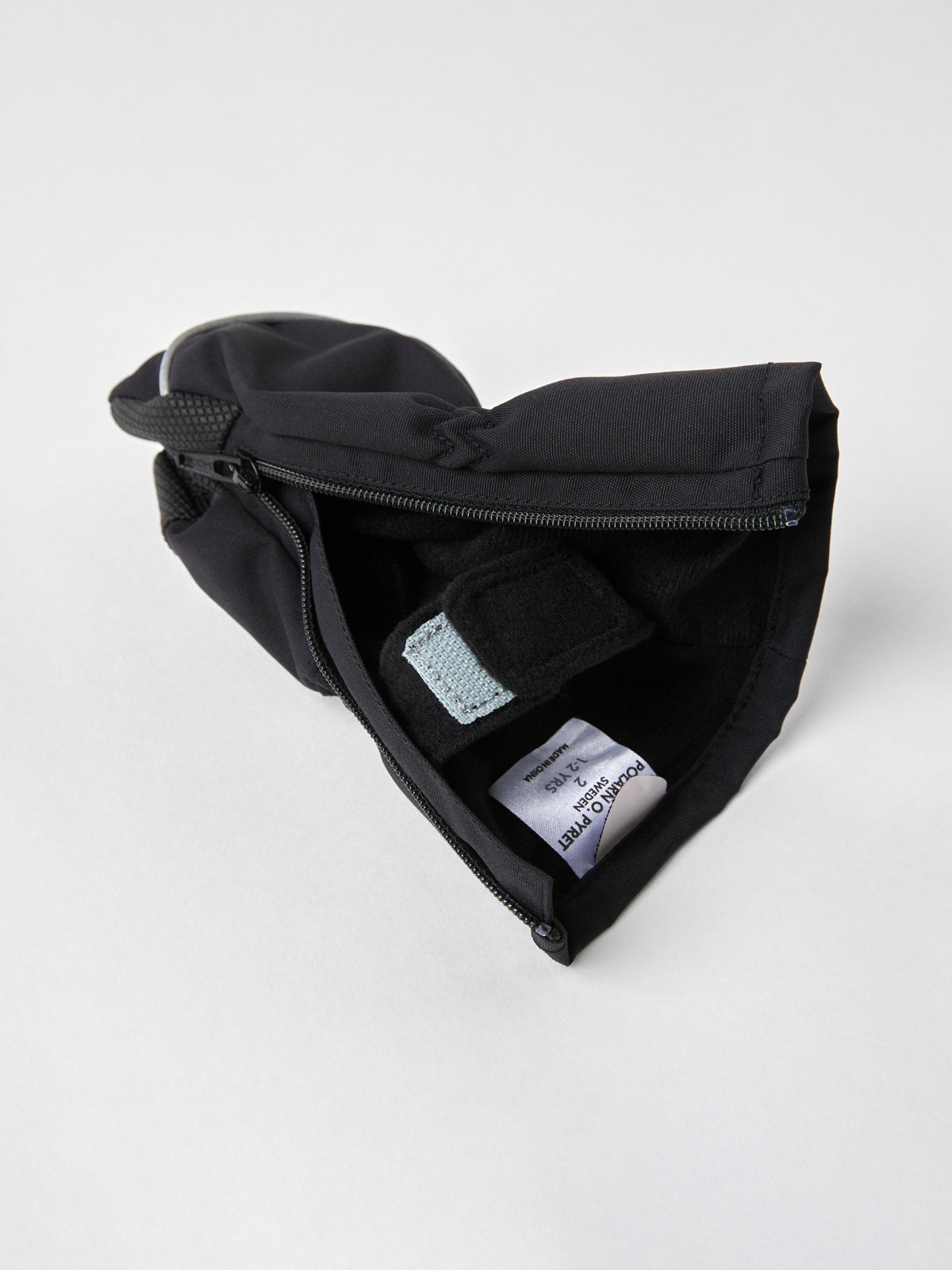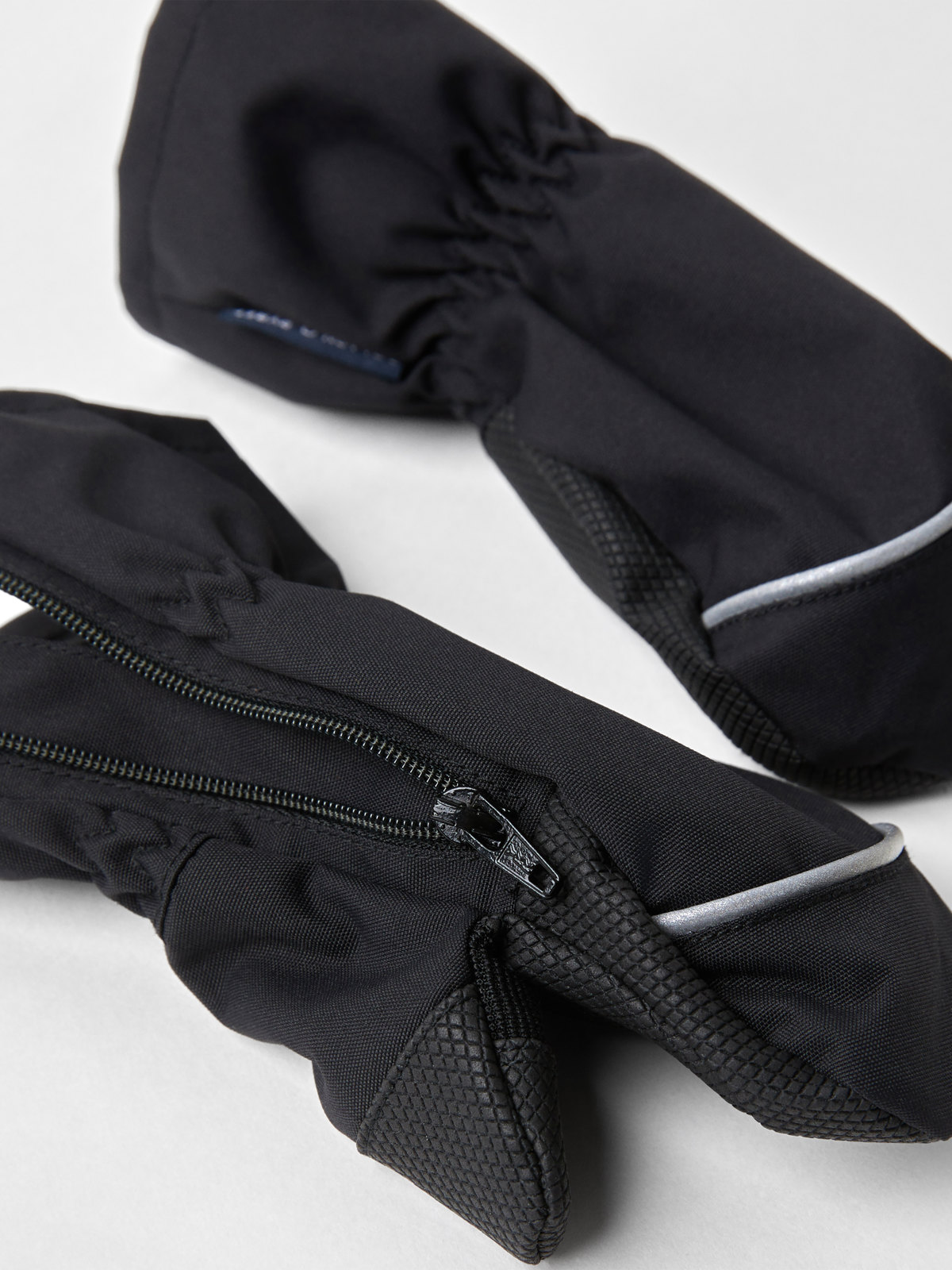 Vindtäta skalvantar. Vantarna har en dragkedja på sidan som förenklar av- och påtagning. De har tydliga reflexer på ovansidan, samt förstärkningarna på insidan av handflatan, som gör vantarna lätta att greppa med. På insidan av vantarna finns det dessutom ett elastiskt band i mjuk fleece som går att knäppa runt handleden med karborreband så vantarna sitter på plats. Dragkedjan är inte vattentät.