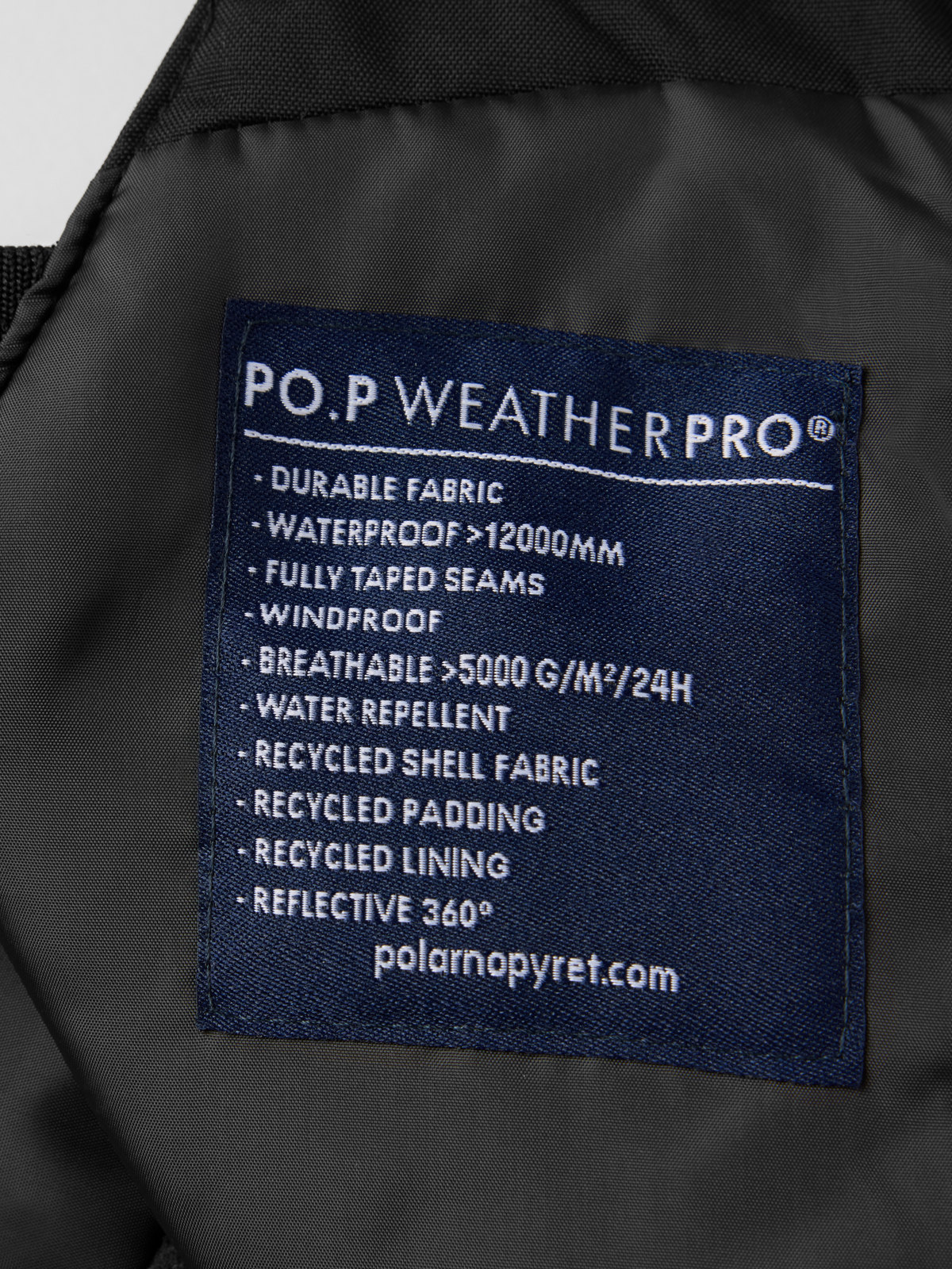 Ytterkläder märkta PO.P WeatherPro® uppfyller alla våra krav för funktionsytterplagg, oavsett om det gäller slitstyrka, vattentäthet, andningsförmåga eller barnsäkerhet.