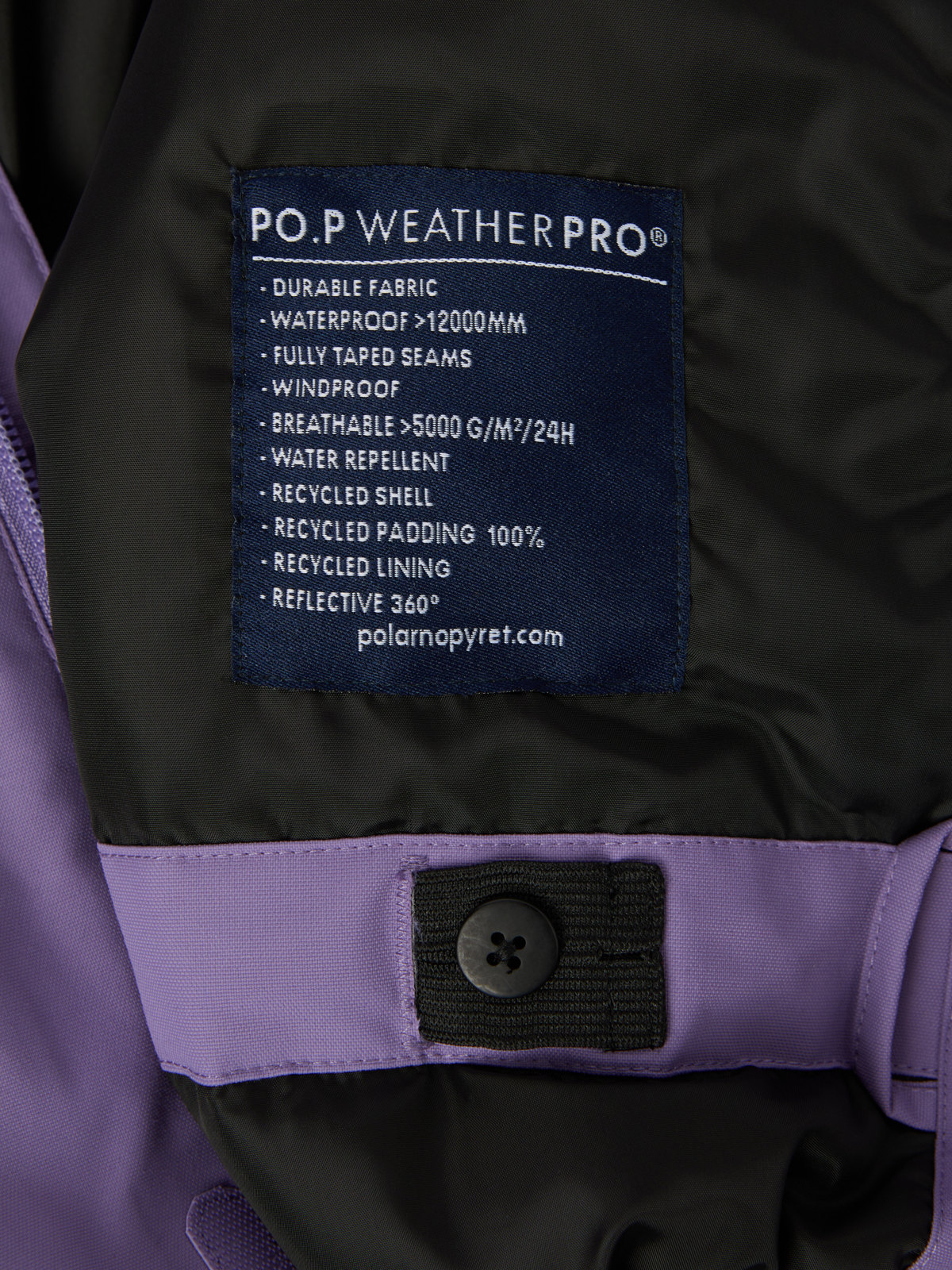 Ytterkläder märkta PO.P WeatherPro® uppfyller alla våra krav för funktionsytterplagg, oavsett om det gäller slitstyrka, vattentäthet, andningsförmåga eller barnsäkerhet.