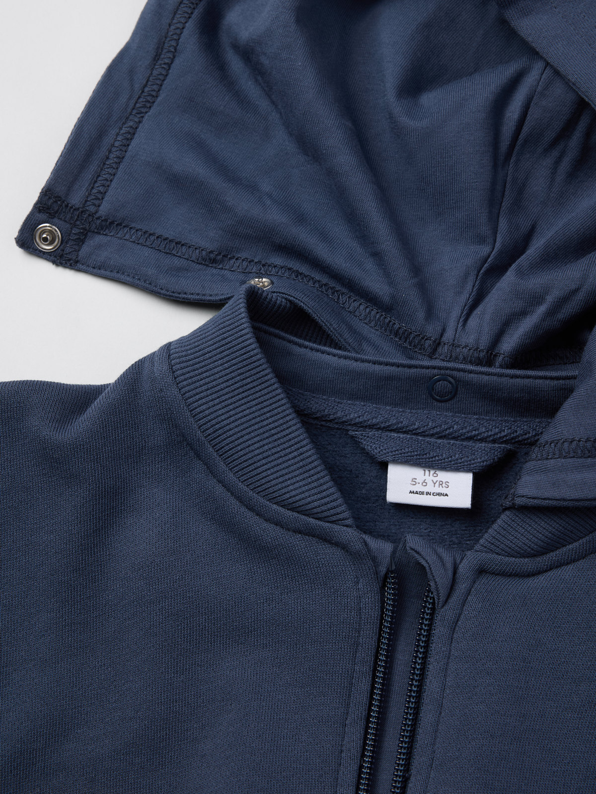 Skön hoodie i 100% ekologisk bomull. Hoodien har en känguruficka och avtagbar huva som går att fästas med tryckknappar och elastisk mudd vid ärmslut och i nederkant.