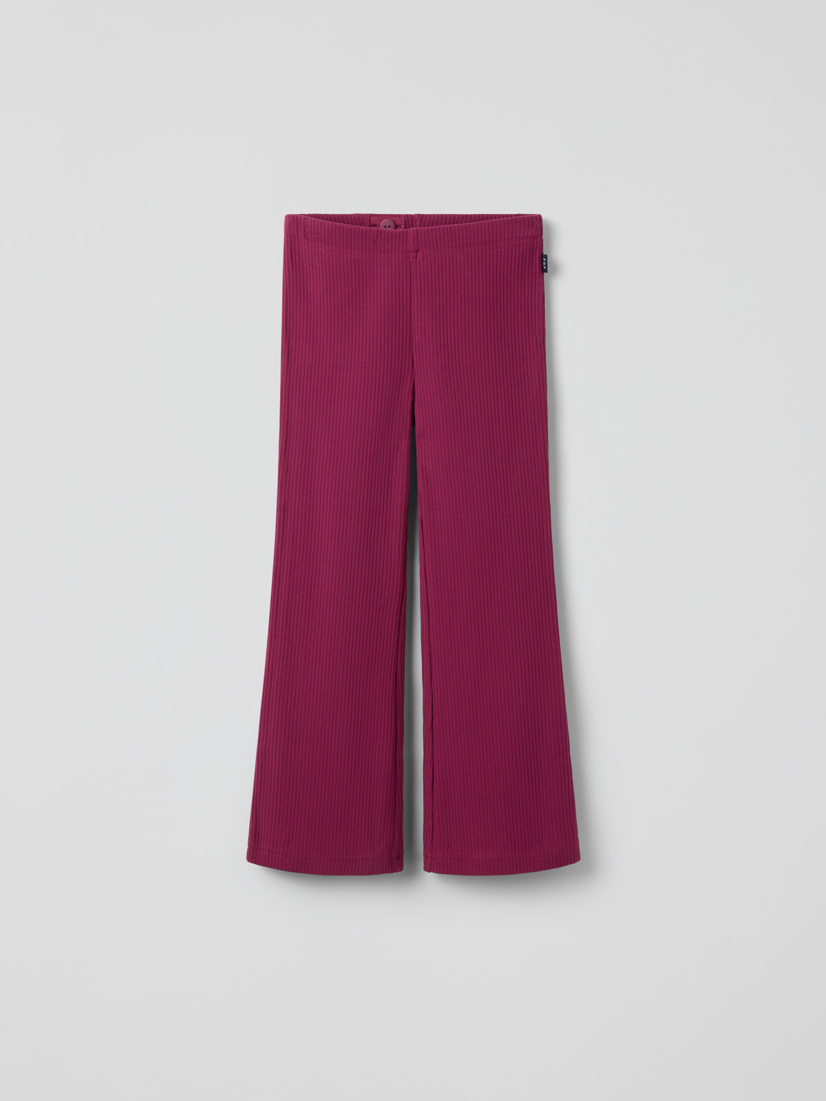 Ribbade leggings i 100 % ekologisk bomull med utvsängda ben. Mjuka och lekvänliga favoriter perfekta både för förskolan och skolan. Byxan har justerbar midja med knapphålsresår.