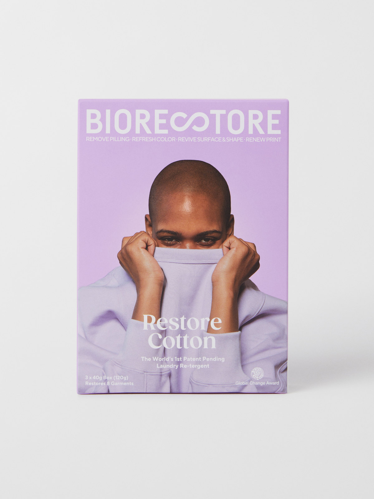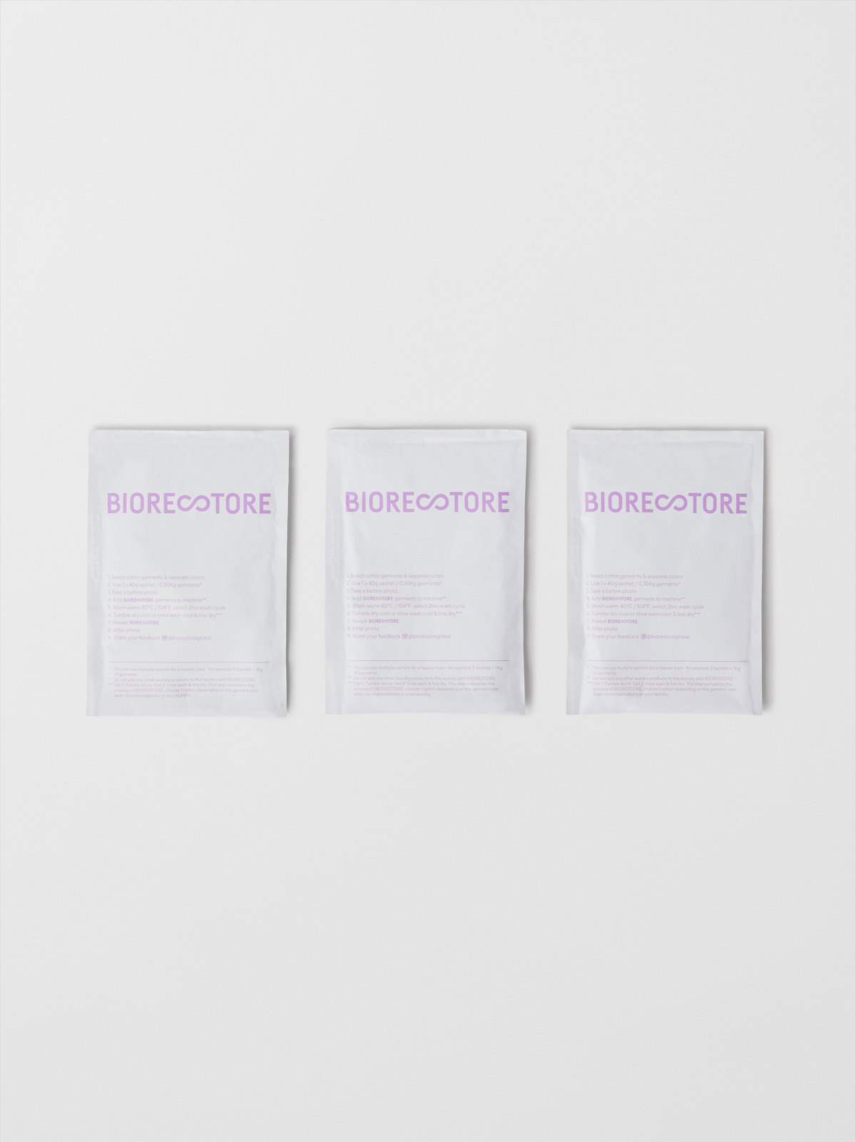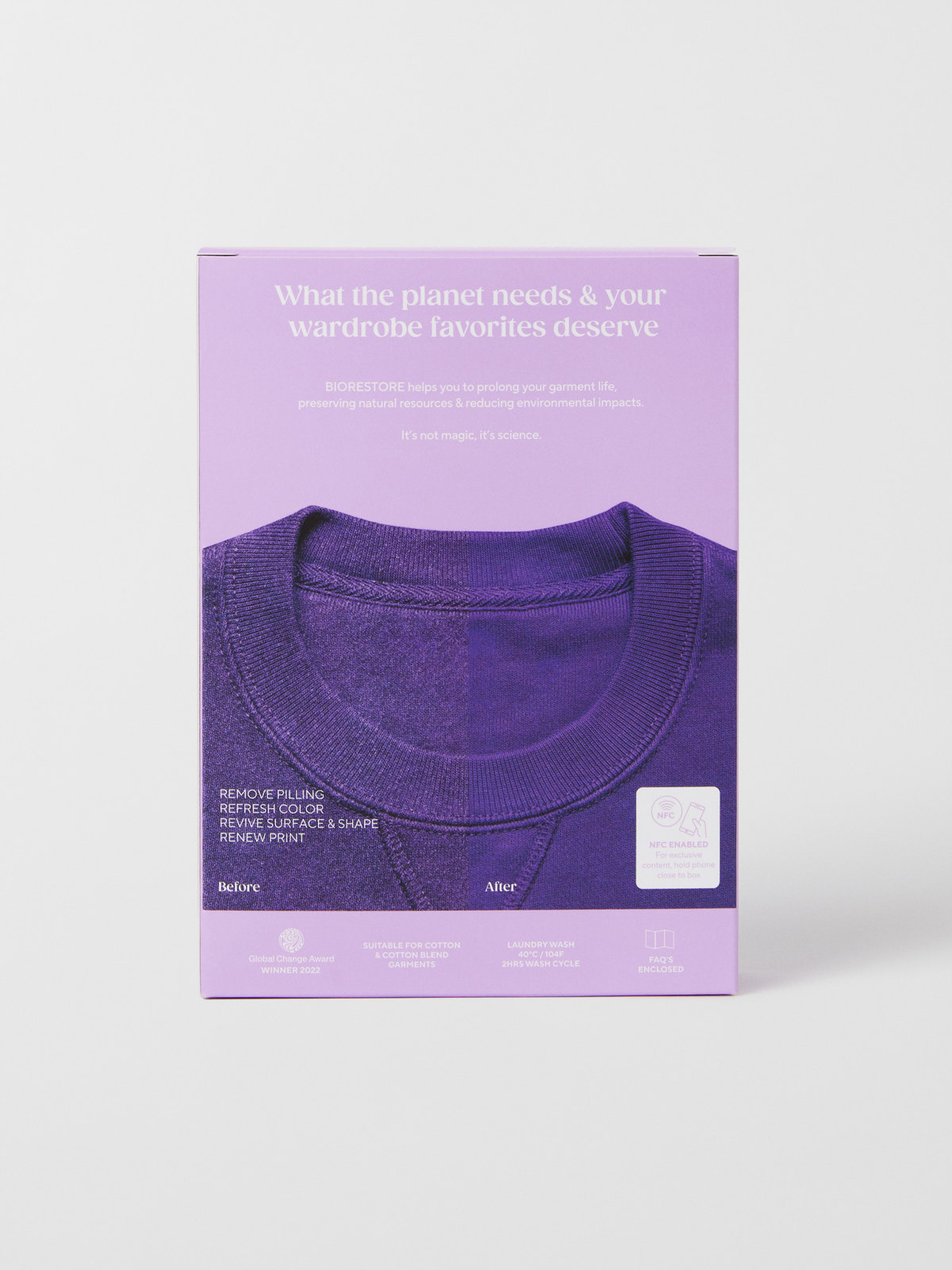 Biorestore är ett enzym-medel som tillsammans med vatten och tvättmaskinens rörelser återställer och fräschar upp färg, förnyar prints och återupplivar klädernas yta. Det är enkelt att använda och gör alla dina favoritplagg* som nya efter bara en behandling.