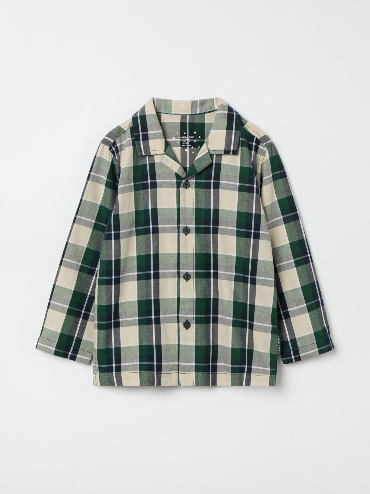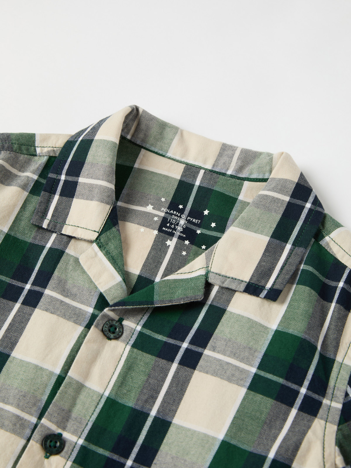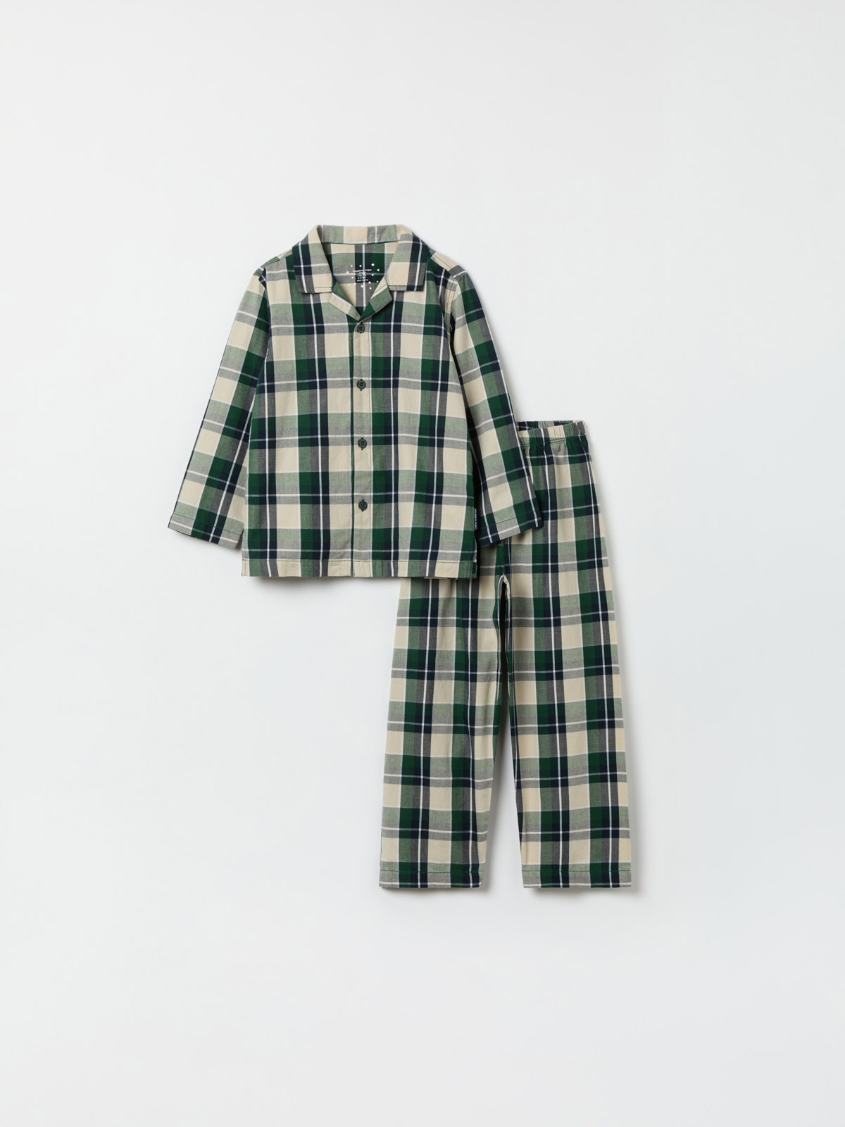 Rutig tvådelad pyjamas med klassisk skjorta och byxa i rak modell – matcha hela familjen! Pyjamasen är tillverkad i lätt borstad bomull och har elastisk midja.