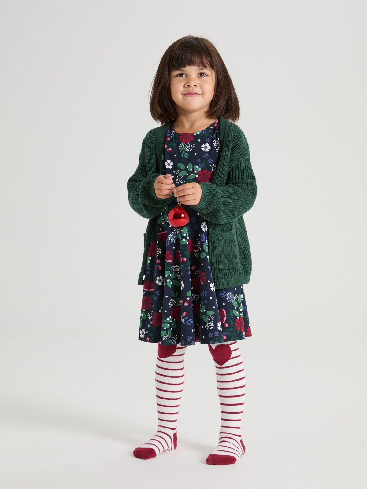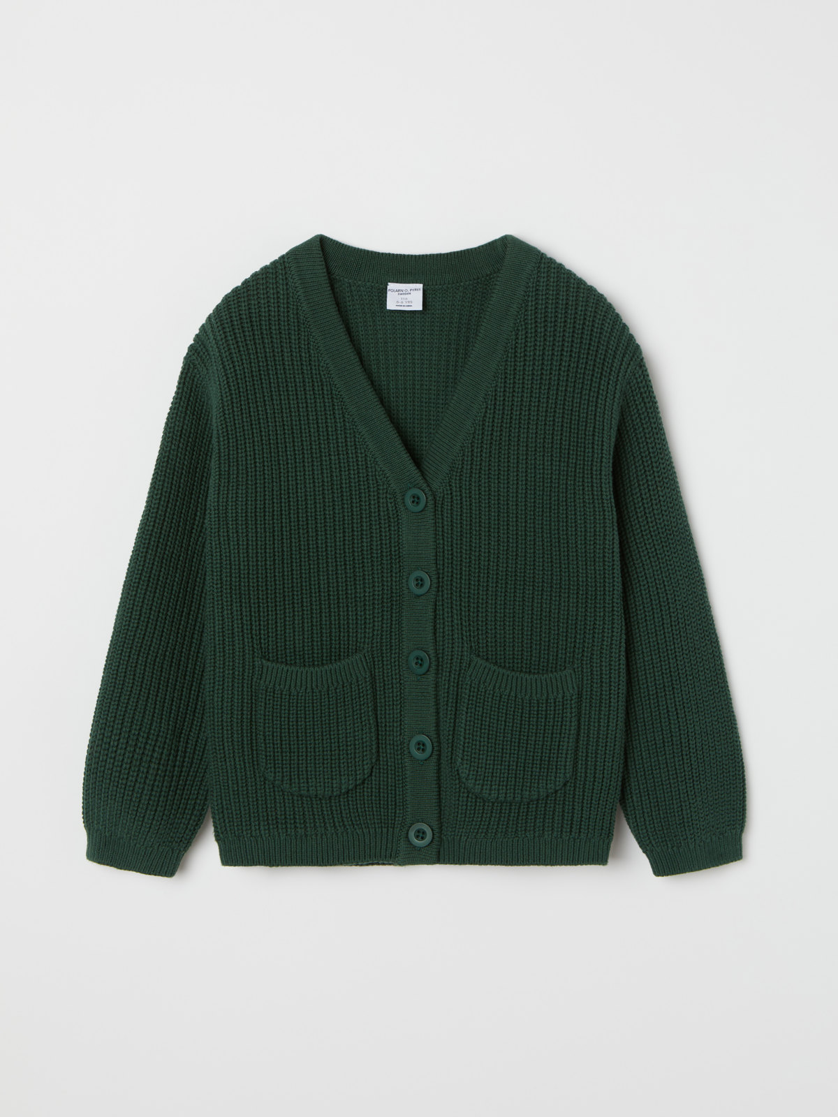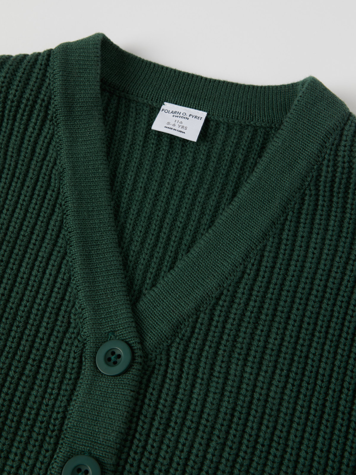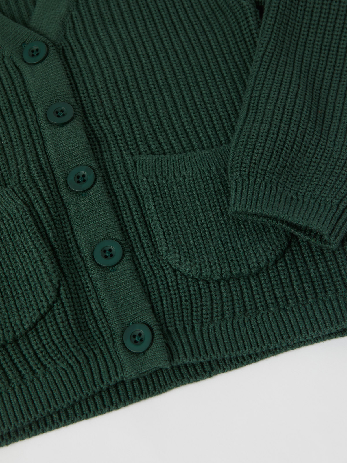 Stickad kofta i mjuk ekologisk bomull – ett riktigt mysplagg både till vardag och fest.