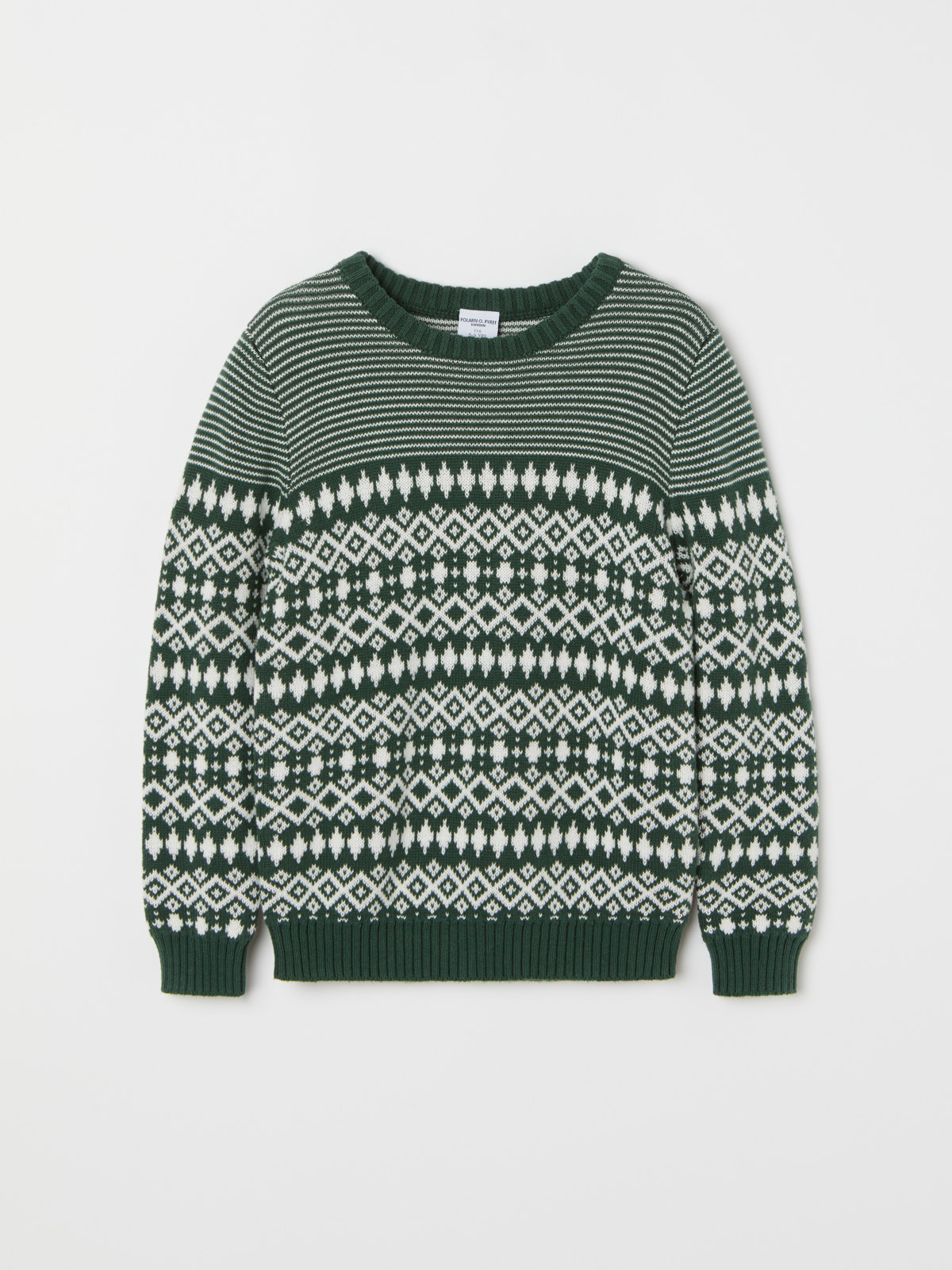 En jaquardstickad tröja i 100 % ekologisk bomull med fint vinterinspirerat mönster. Den ultimata jultröjan!