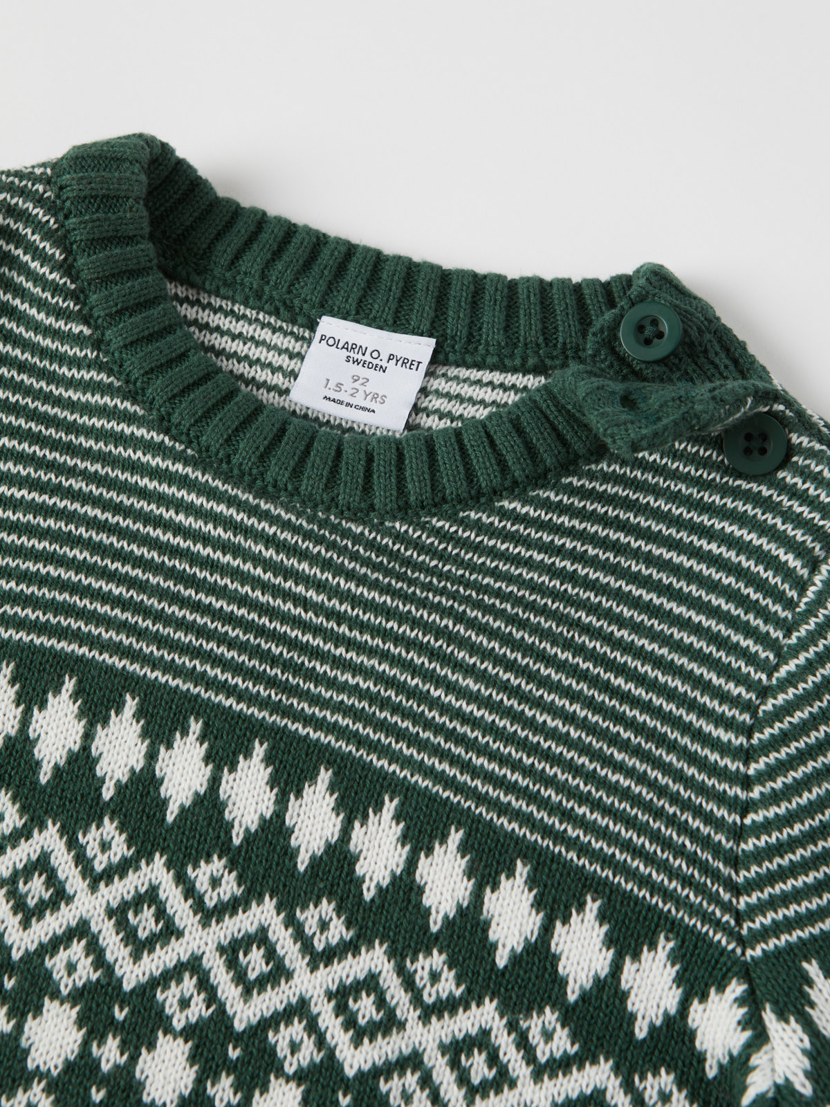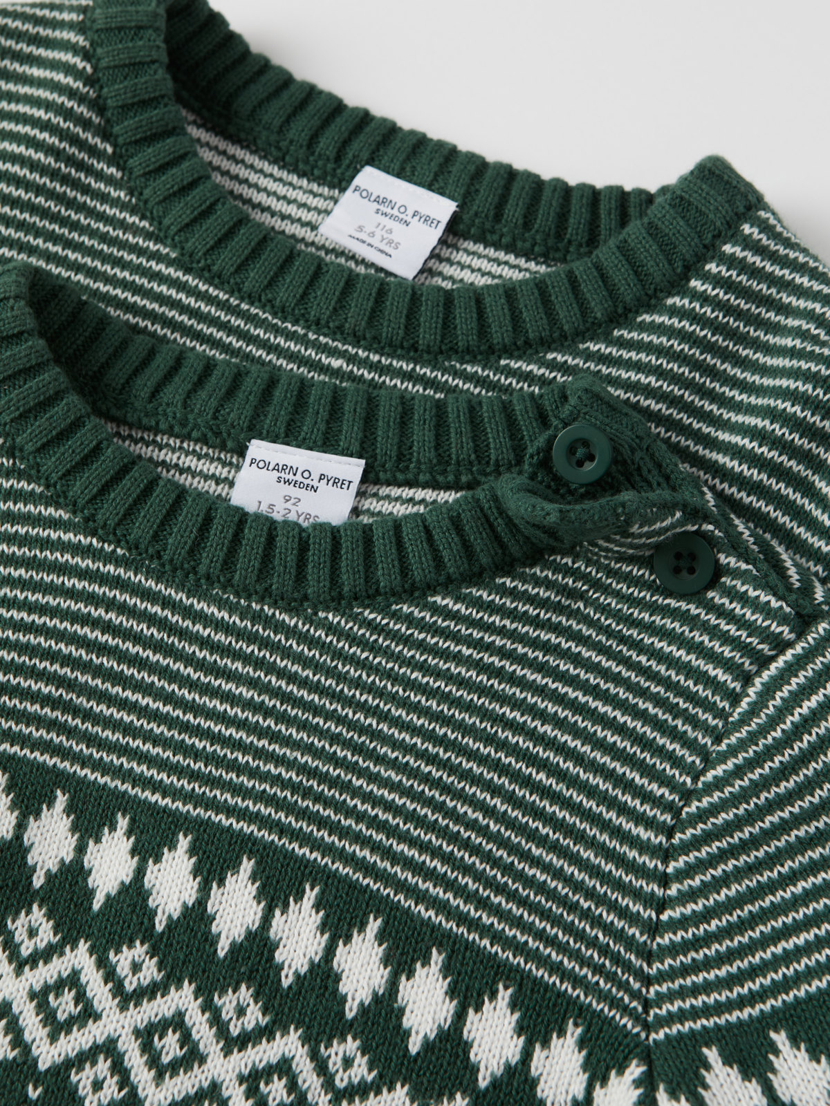Storlek 86-92 har knappar på ena axeln för att underlätta klädbyten.