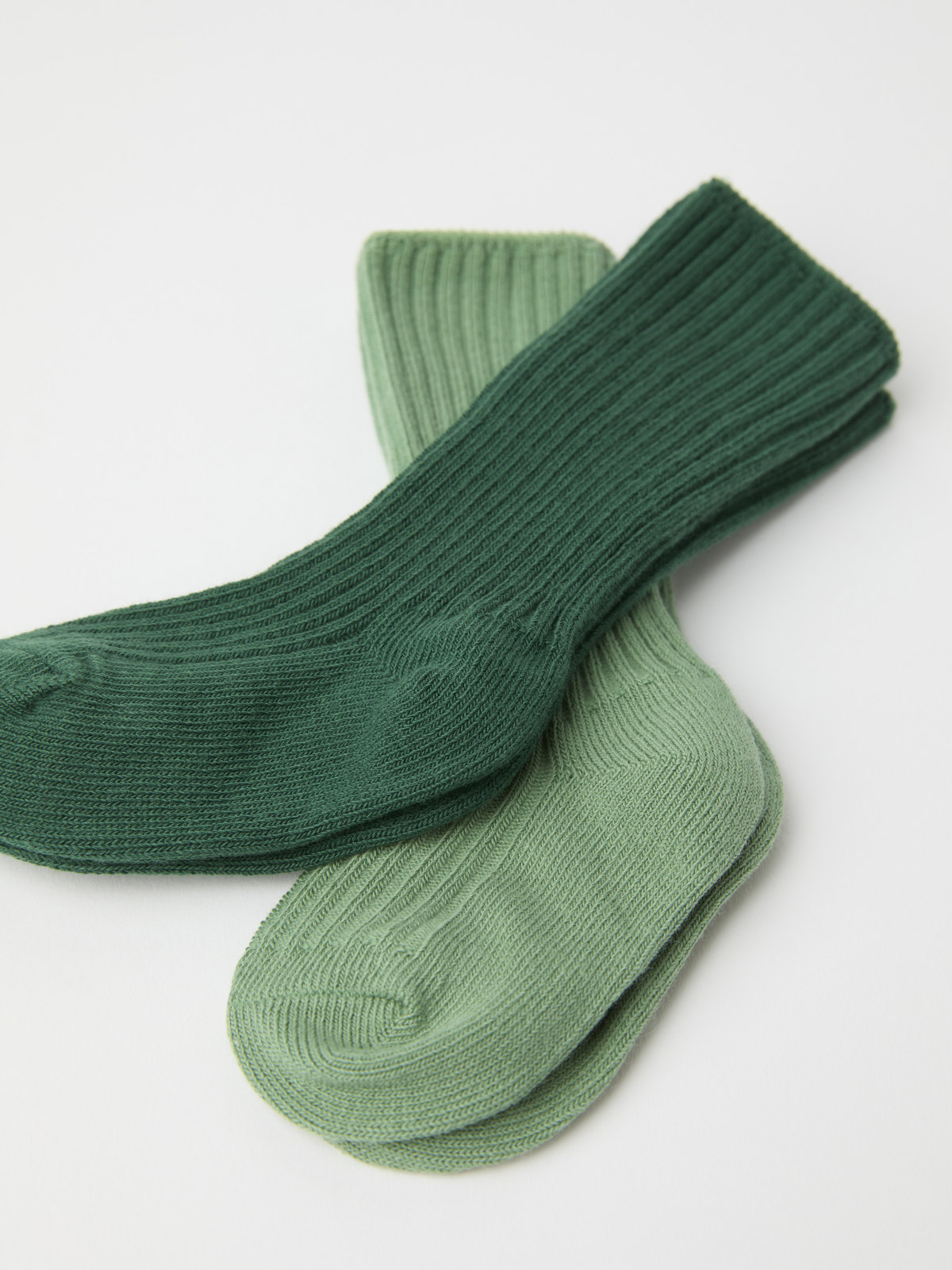 Fyll på strumplådan med två par enfärgade strumpor, i mjuk ekologisk bomull för baby. Strumporna har mjuk, vikbar mudd som inte skaver.