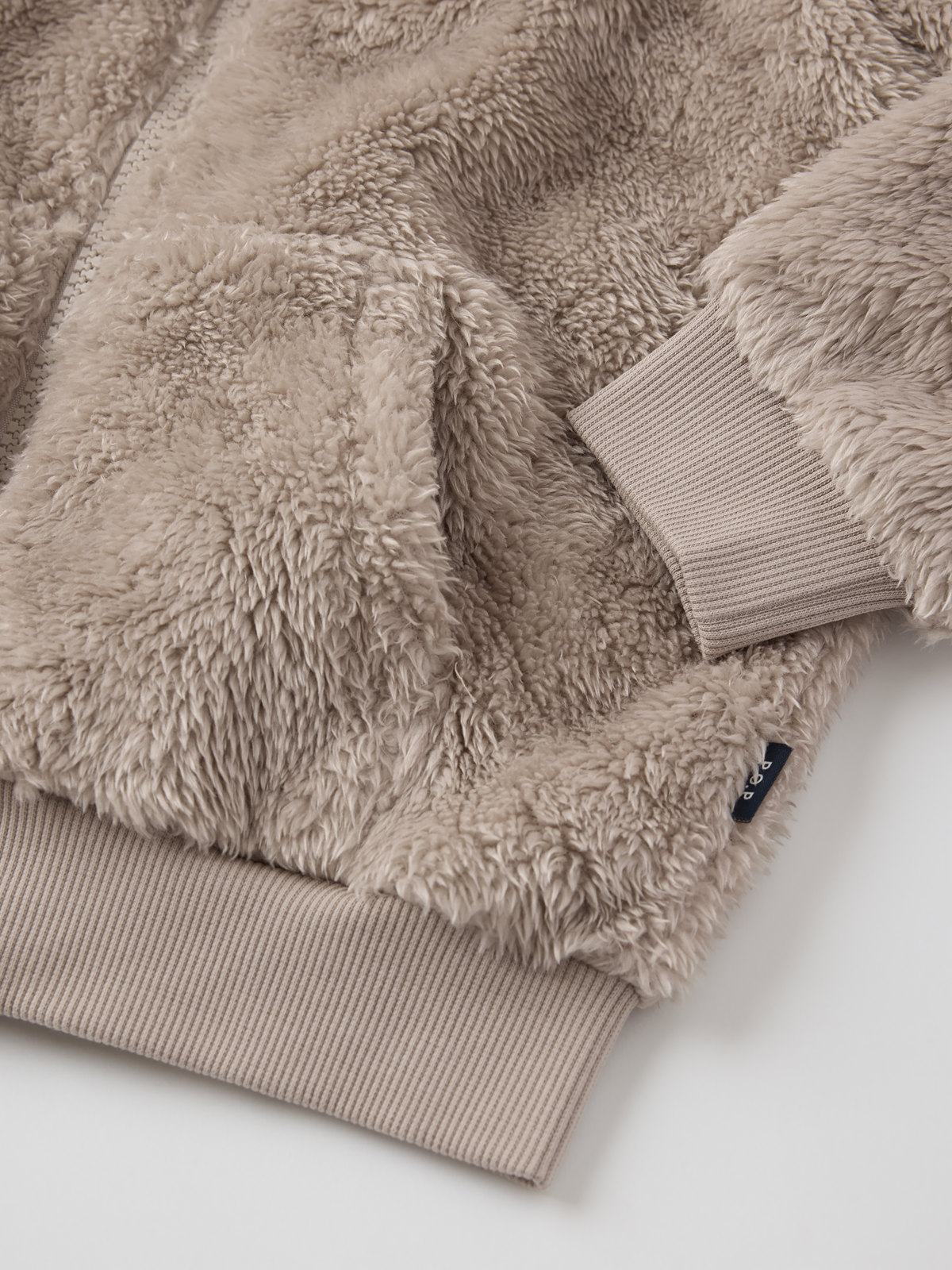 Gosig pilehoodie tillverkad av 100% återvunnen polyester. Hoodien har en känguruficka och avtagbar huva med söta små öron. De ribbade muddarna i ärmslut och nederkant ger en skön passform. Dragkedjan har ett skydd högst upp för att inte skava mot haka och kind.