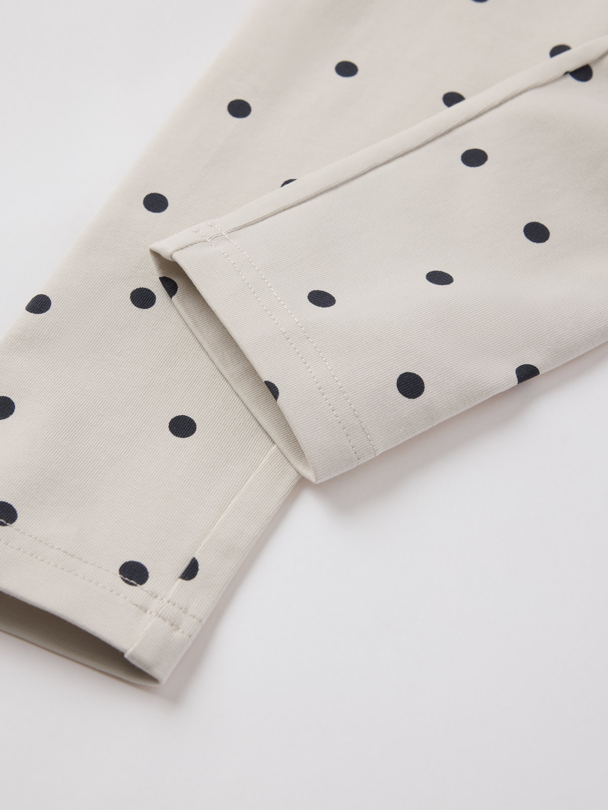 Prickiga leggings i mjuk ekologisk bomullstrikå – en av våra mest populära produkter! Midjan går att justera med knapphålsresår.