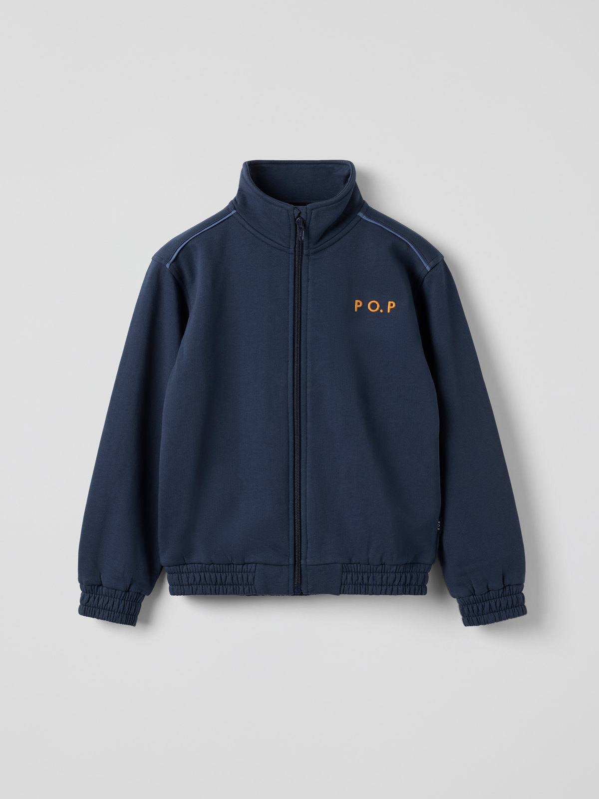 Jacka i mjuk sweatshirtskvalitet, tillverkad i 100 % ekologisk bomull med zip. Jackan har lång dragkedja som går upp lite i halsen och ribbad mudd i ärmslut och nederkant för skön passform. Tröjan har även en kontrastfärgad logga broderad framtill.