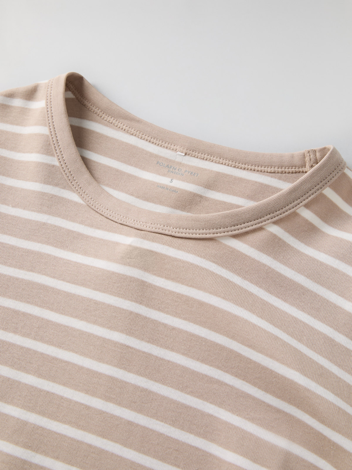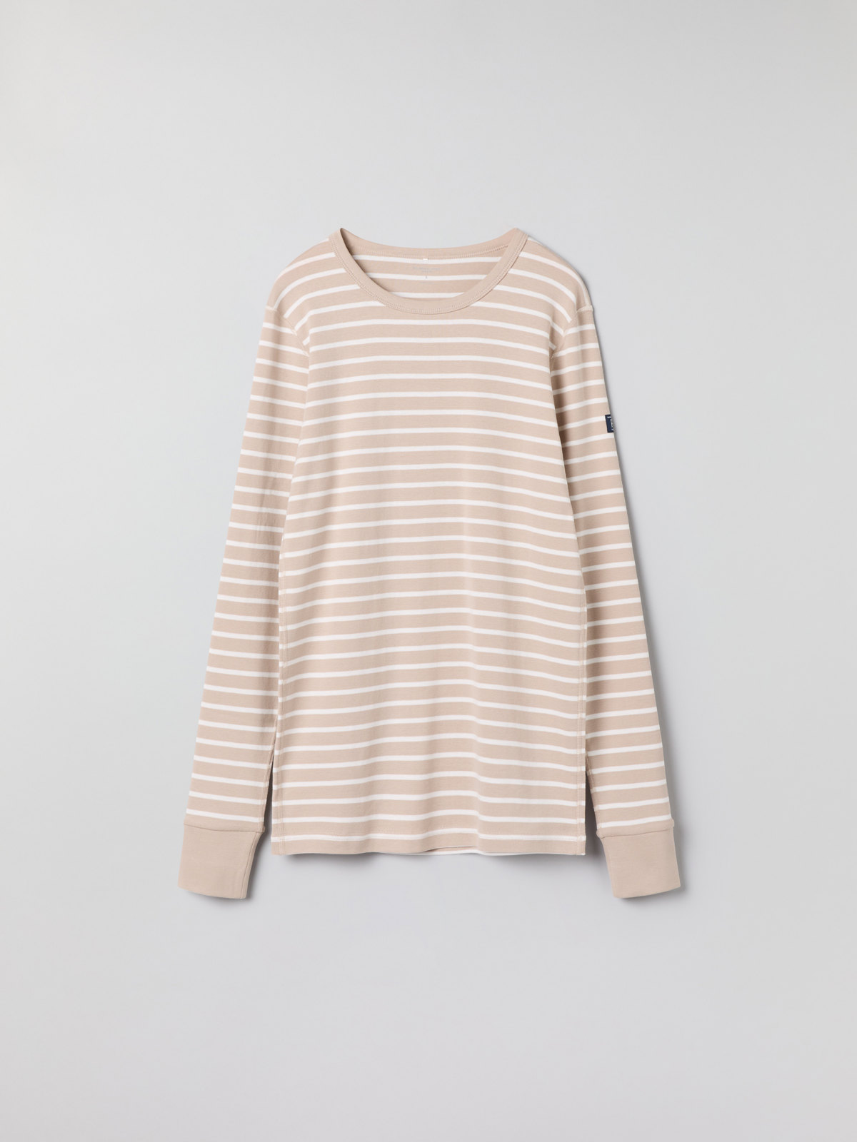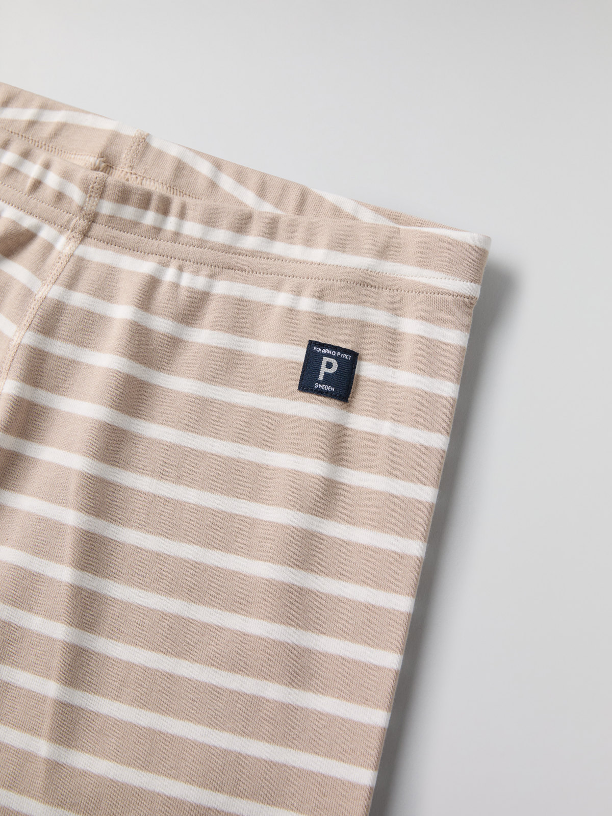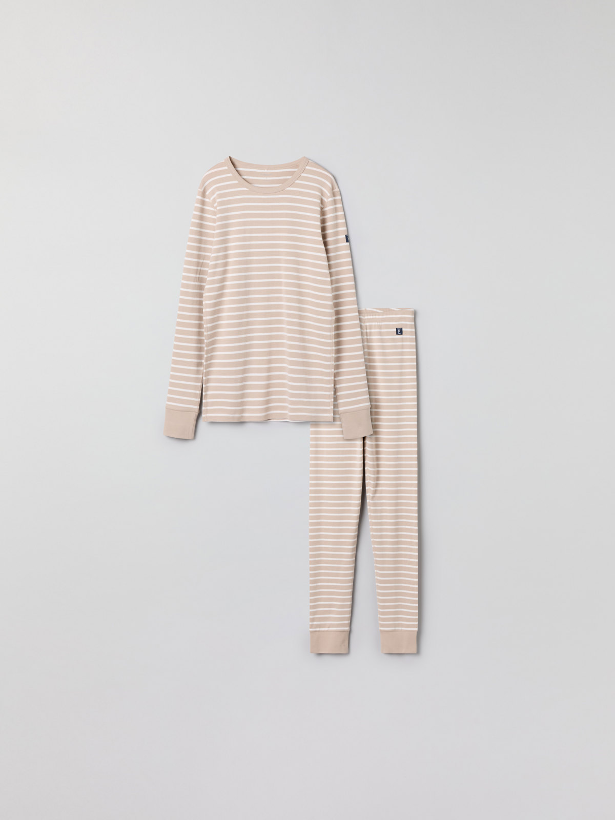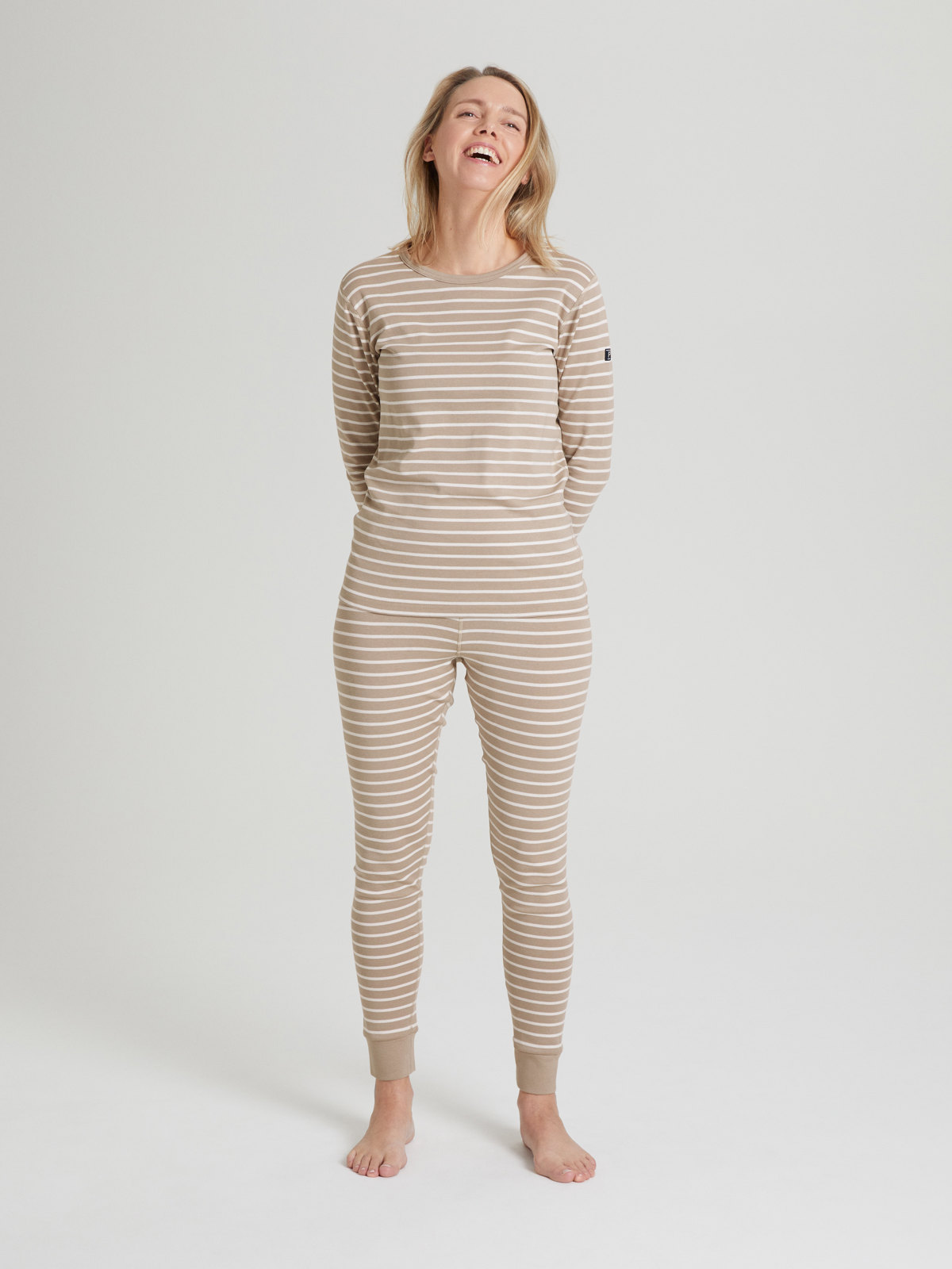 Set med tröja och byxa i vår klassiska rand för vuxen. Tröjan har mjuk ribbad mudd kring halsringning och vid ärmslut. Byxan har elastisk midja och mjuk ribbad mudd vid benslut.