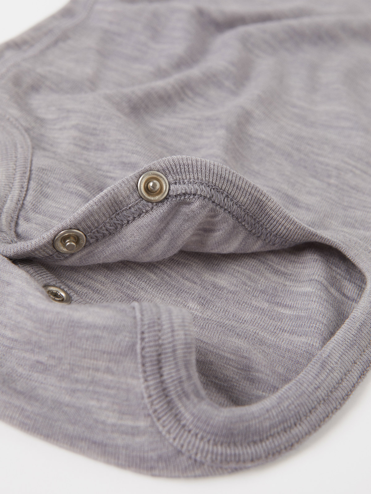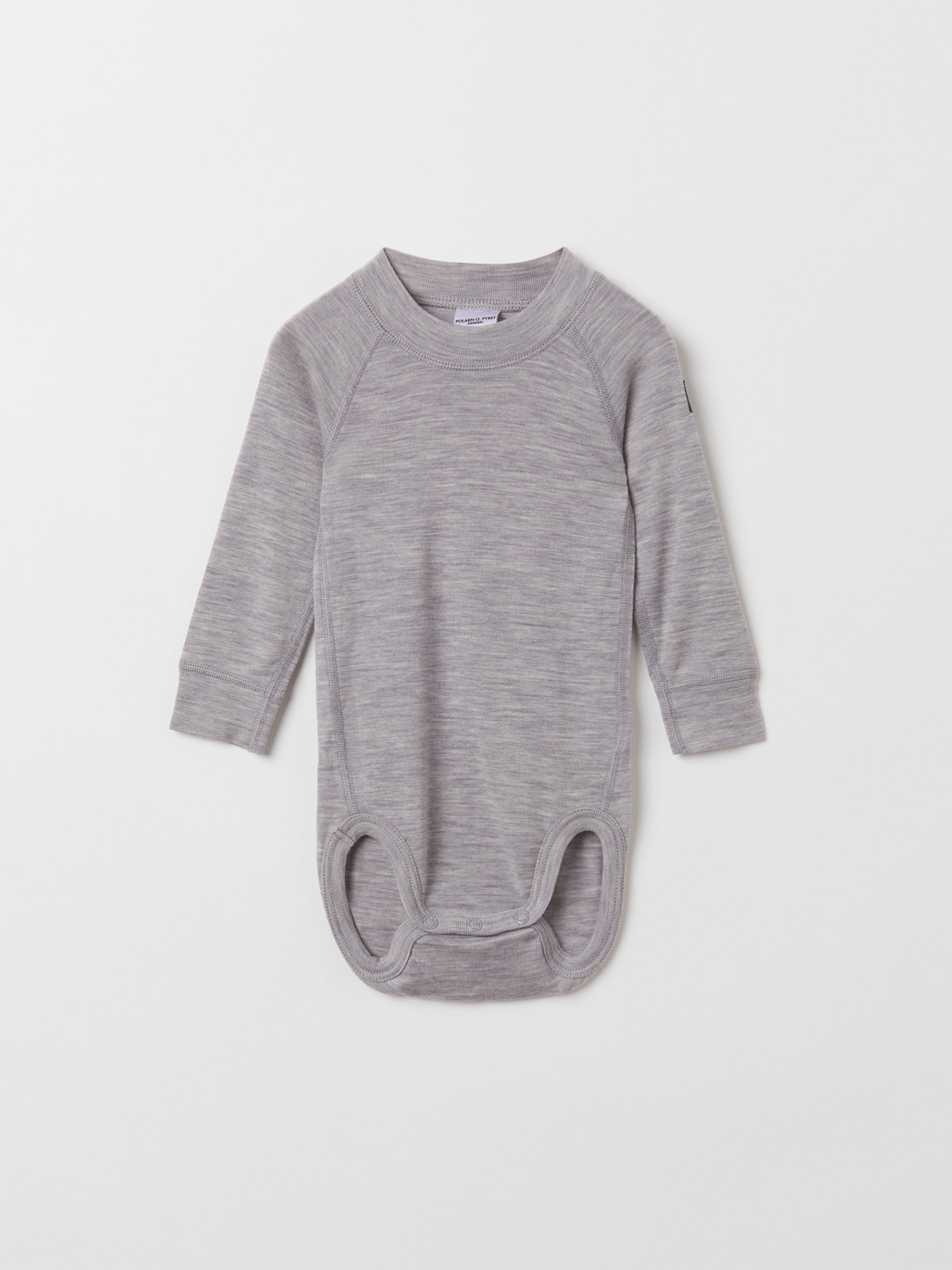 Bodyn är sydd med extra mjuka sömmar som inte skaver och har tryckknapparna i grenen för att underlätta kläd- och blöjbyten. Ull håller värmen även i blött tillstånd.
