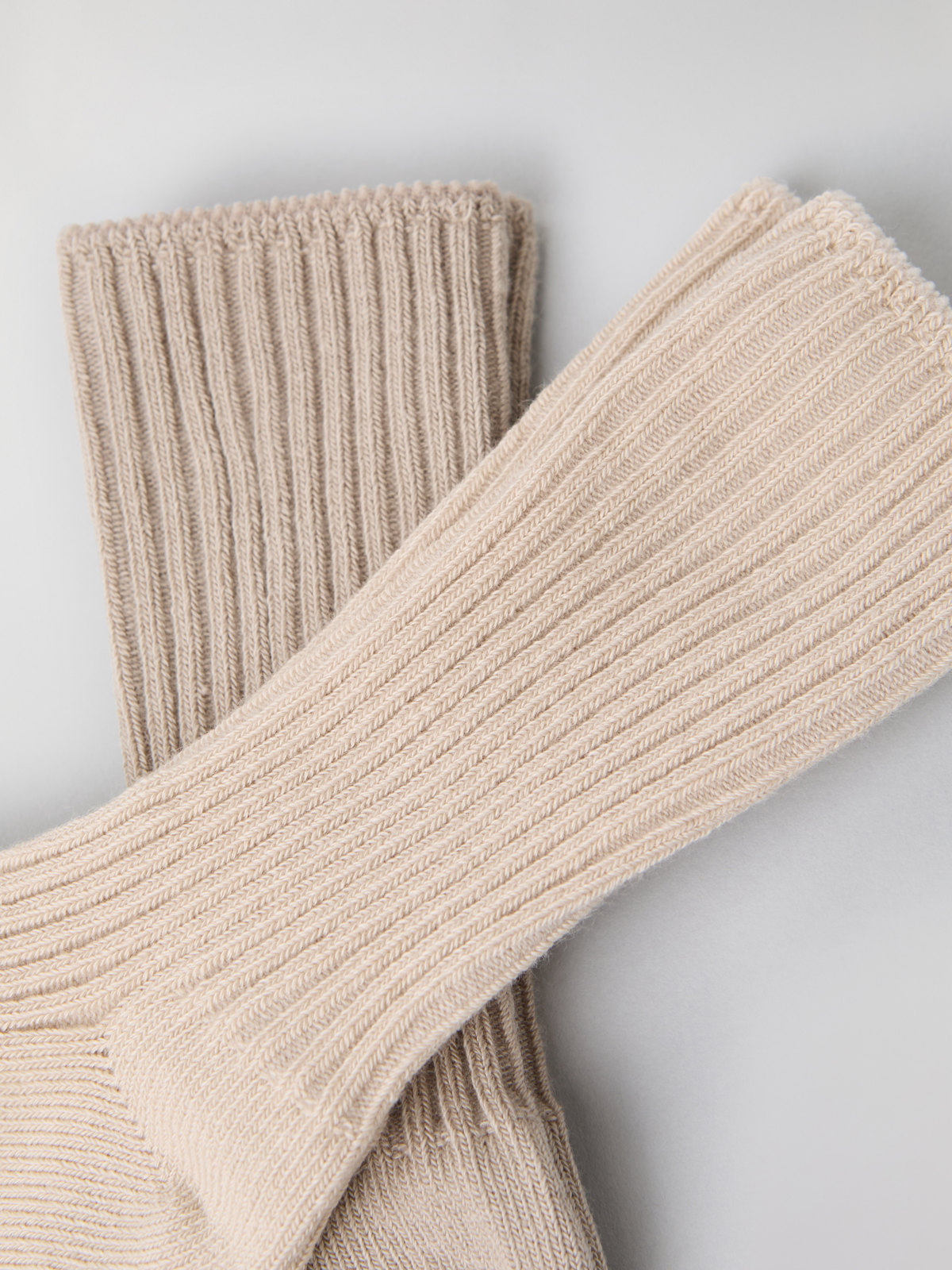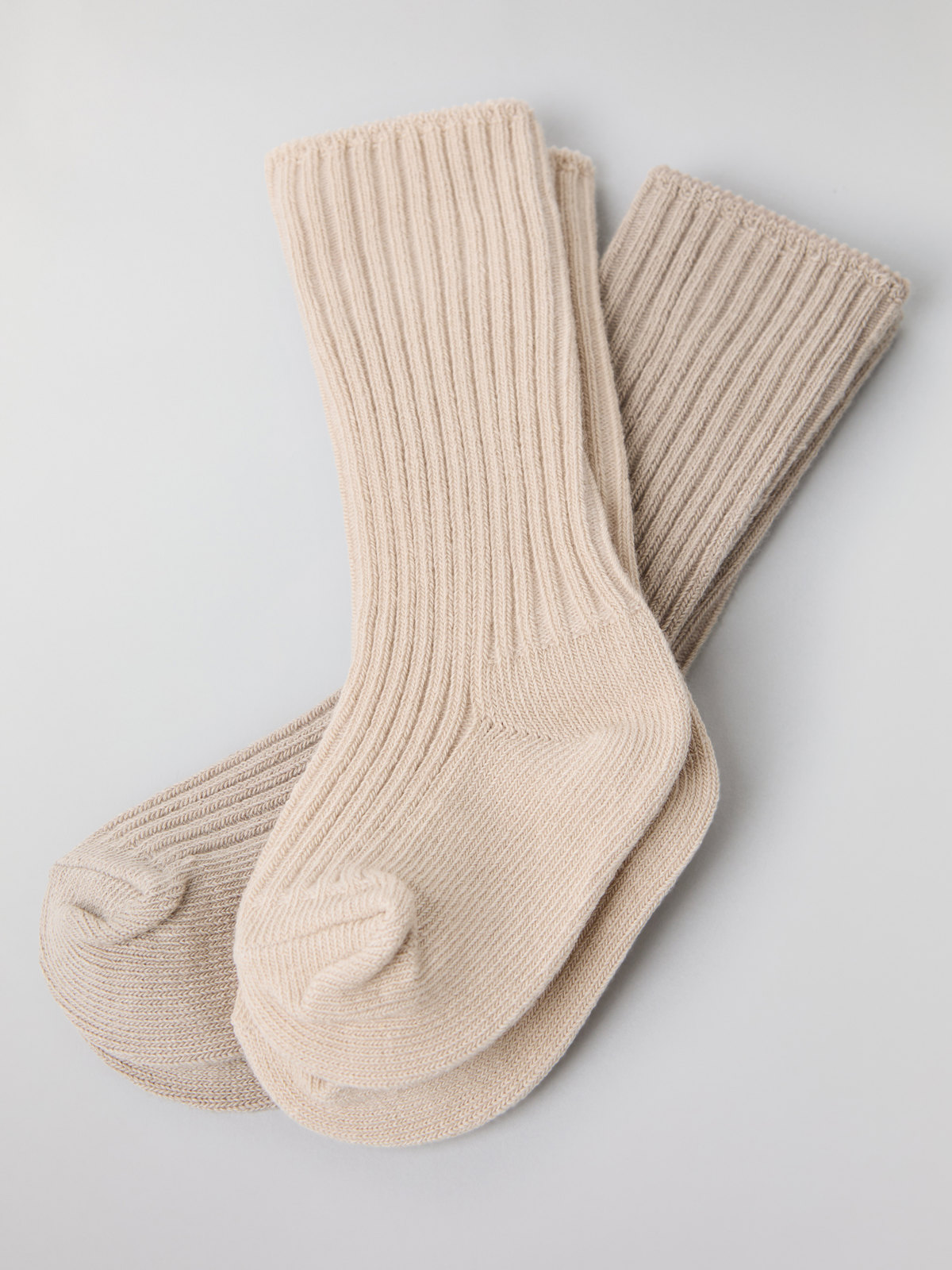 Fyll på strumplådan med två par enfärgade strumpor, i mjuk ekologisk bomull för baby. Strumporna har mjuk, vikbar mudd som inte skaver.