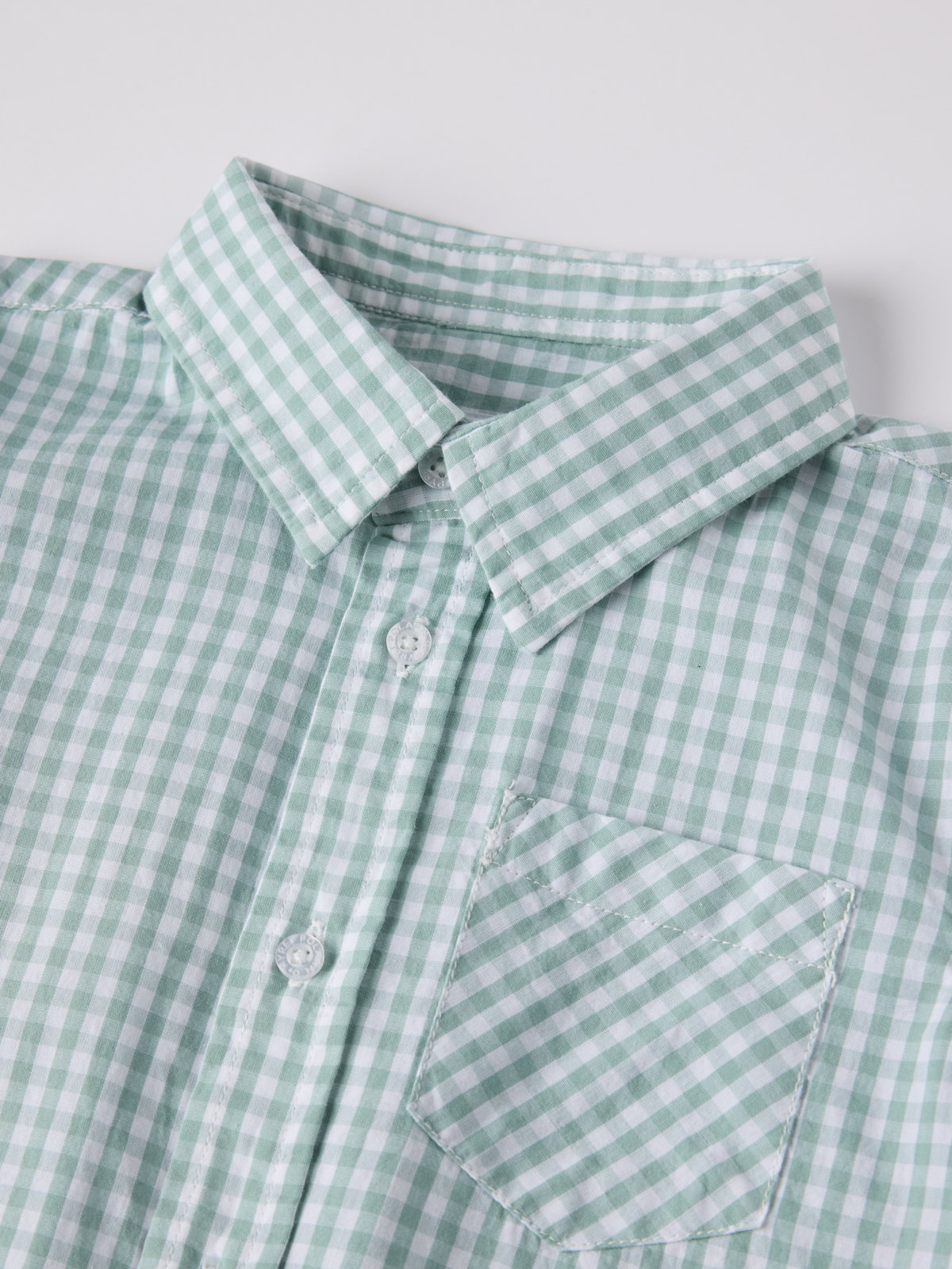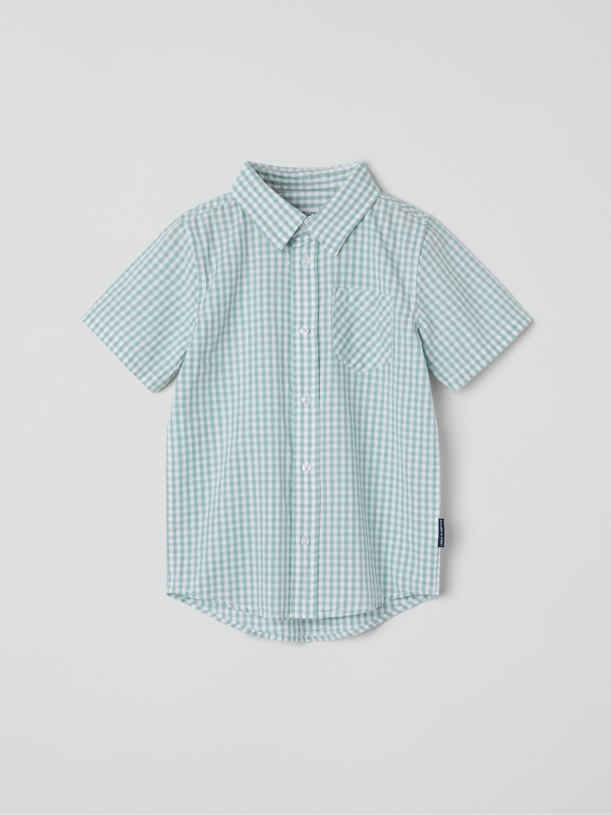Rutig kortärmad skjorta i mjuk poplin av ekologisk bomull – perfekt både till vardags och sommarfesten! Skjortan har en bröstficka och stängs med stängs med knappar fram.