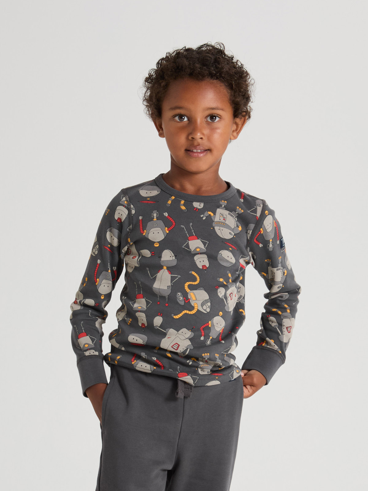 Skön tröja i mjuk ekologisk bomull, helmönstrad med robotar – perfekt att ha till alla tillfällen!