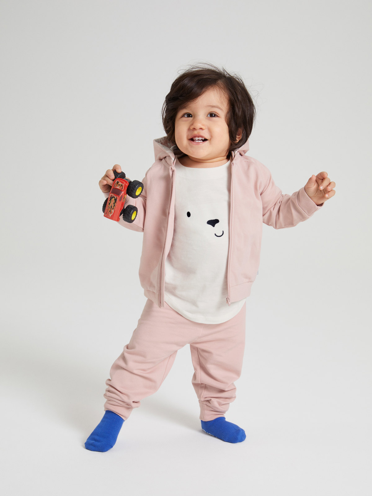 Det bästa vi alla kan göra för att spara på jordens resurser är att använda våra kläder längre. Så länge det bara går. Ta hand om dem ordentligt. Och laga dem när de går sönder. Allt det vill vi hjälpa dig med. Så vi kommer fortsätta att designa kläder av hög kvalitet som kan användas, slitas och älskas länge. Kläder som, när de blivit för små, kan ges vidare till nästa barn. Och nästa. Det är hållbarhet för oss.