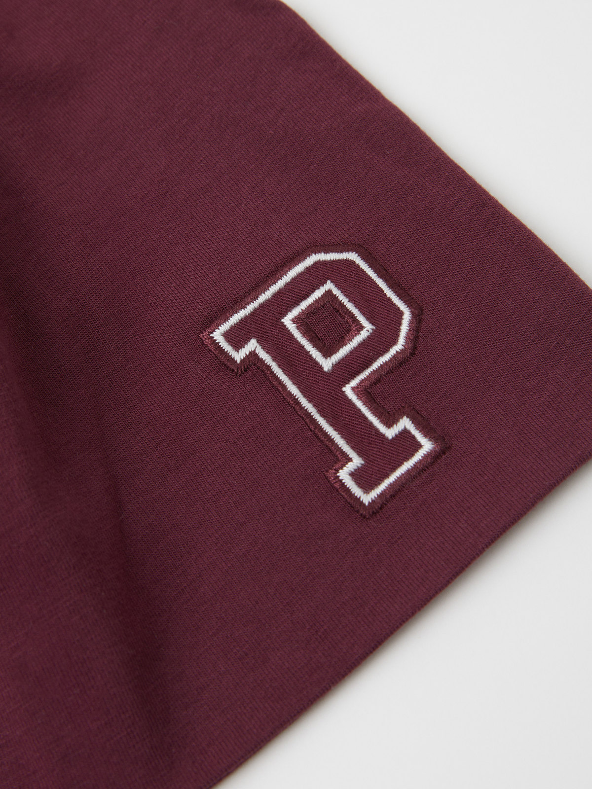 Enfärgad mössa i mjuk ekologisk bomull med en P-applikation fram.