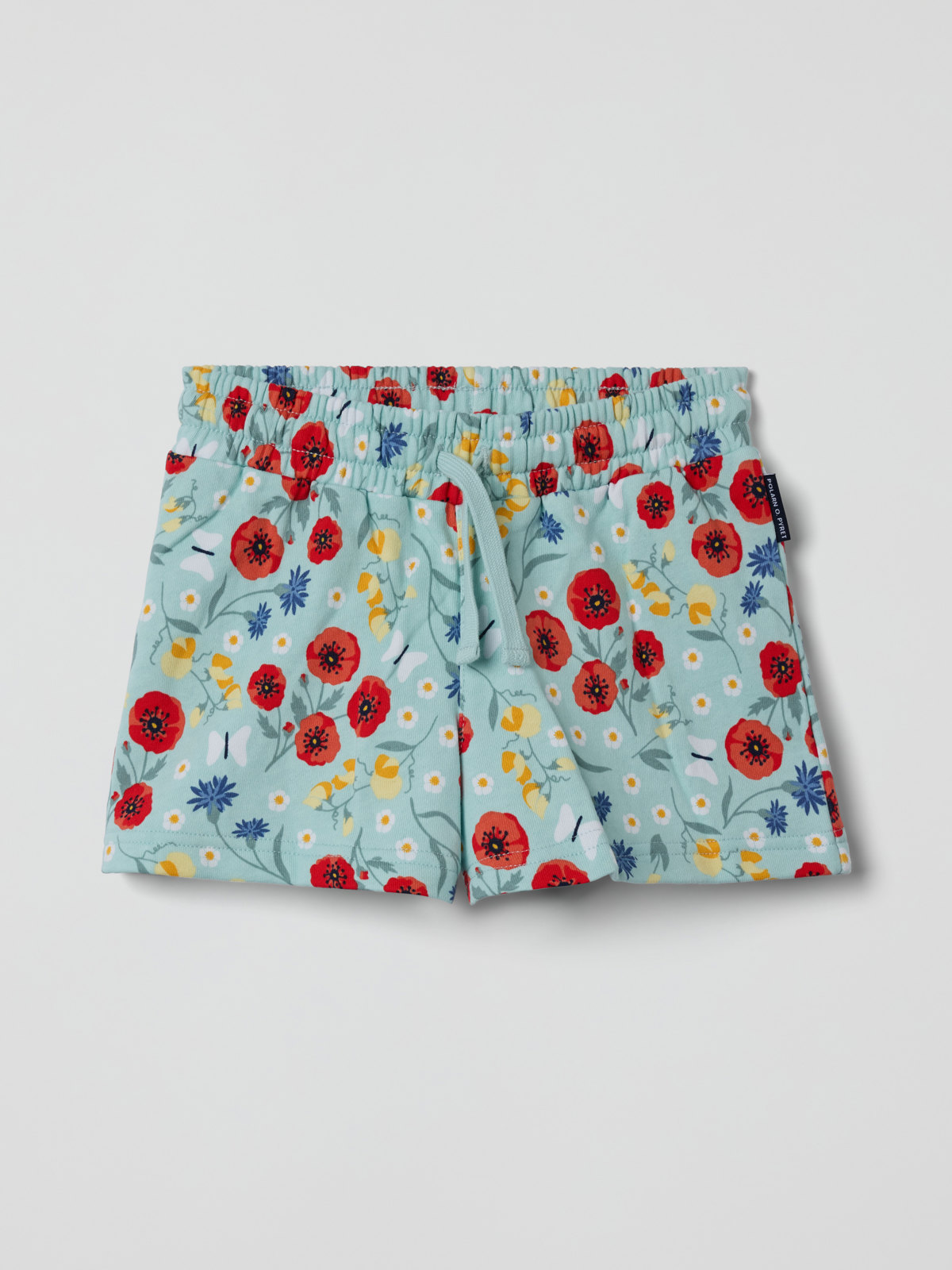 Blommiga shorts med mjuk sweatshirtkvalitet i 100 % ekologisk bomull – ett perfekt vardagsplagg i sommargarderoben! Shortsen har elastisk midja som kan justeras med knytband.