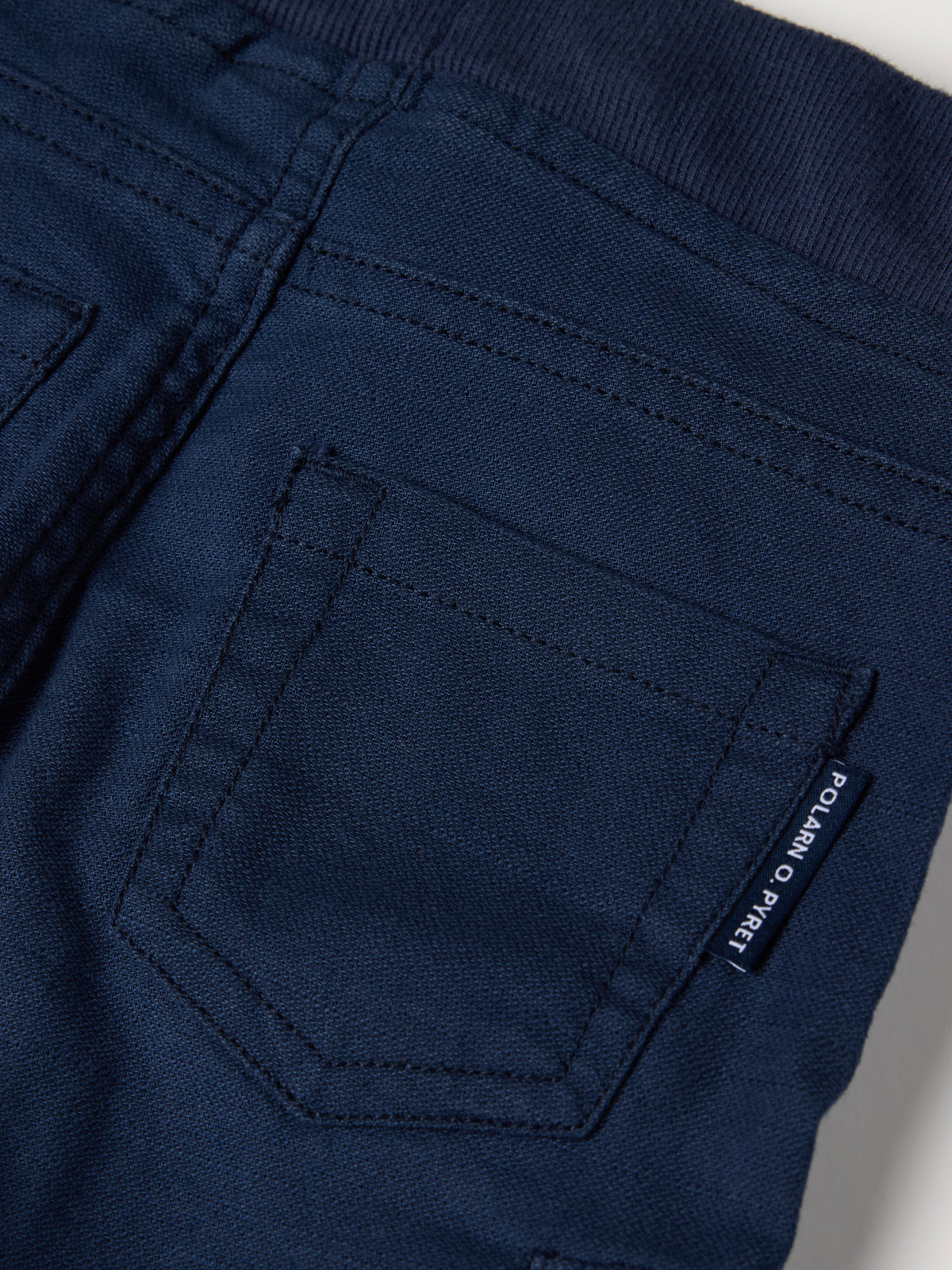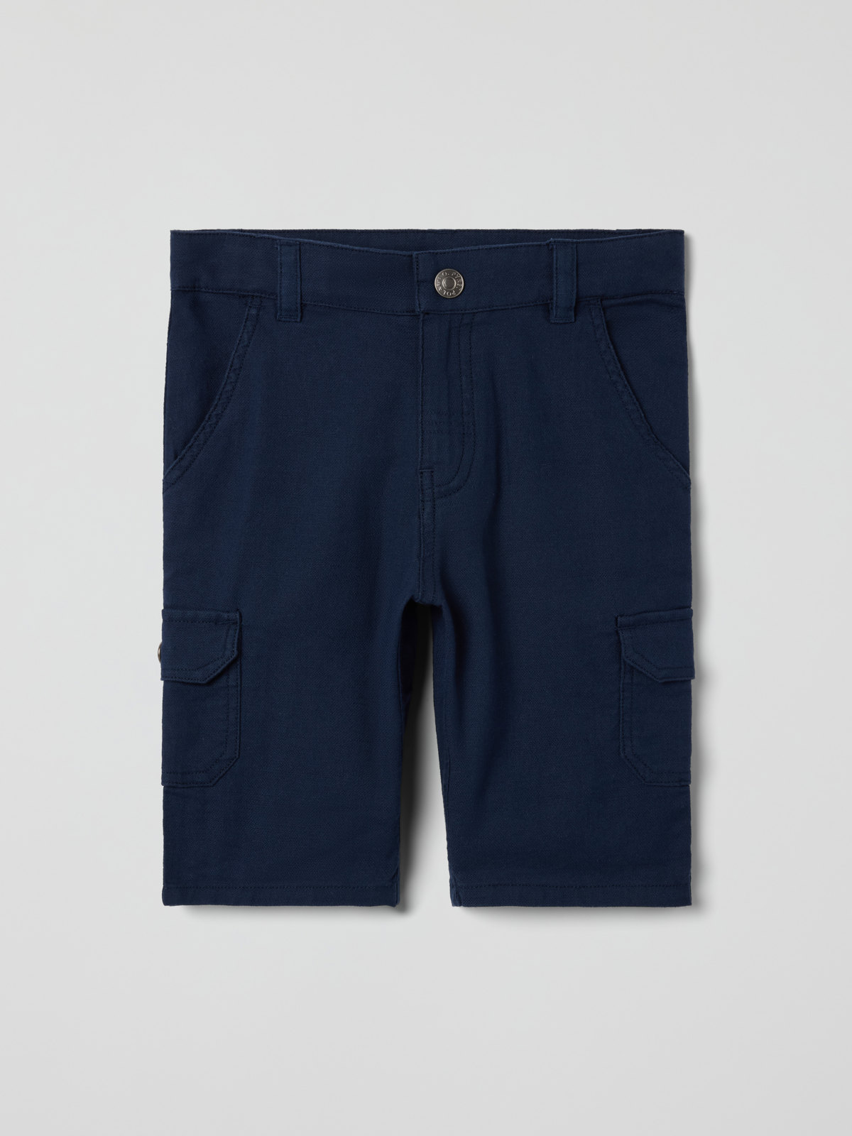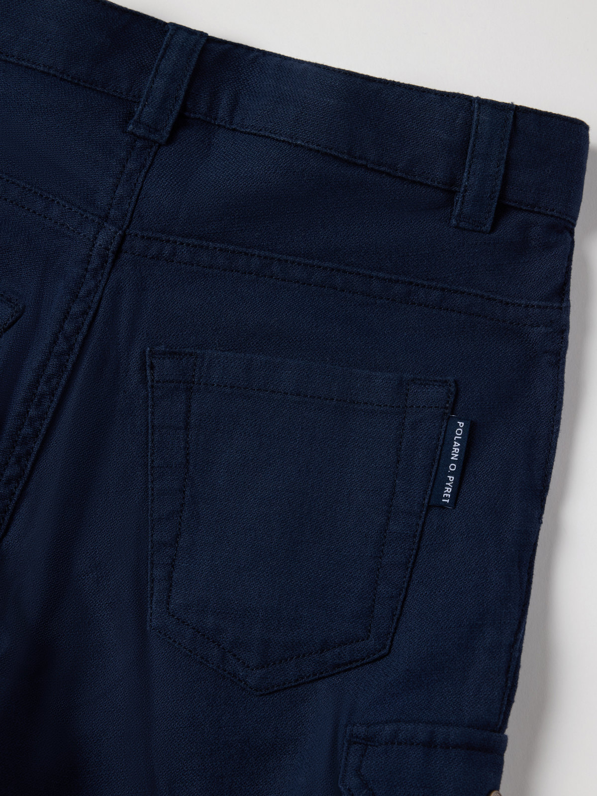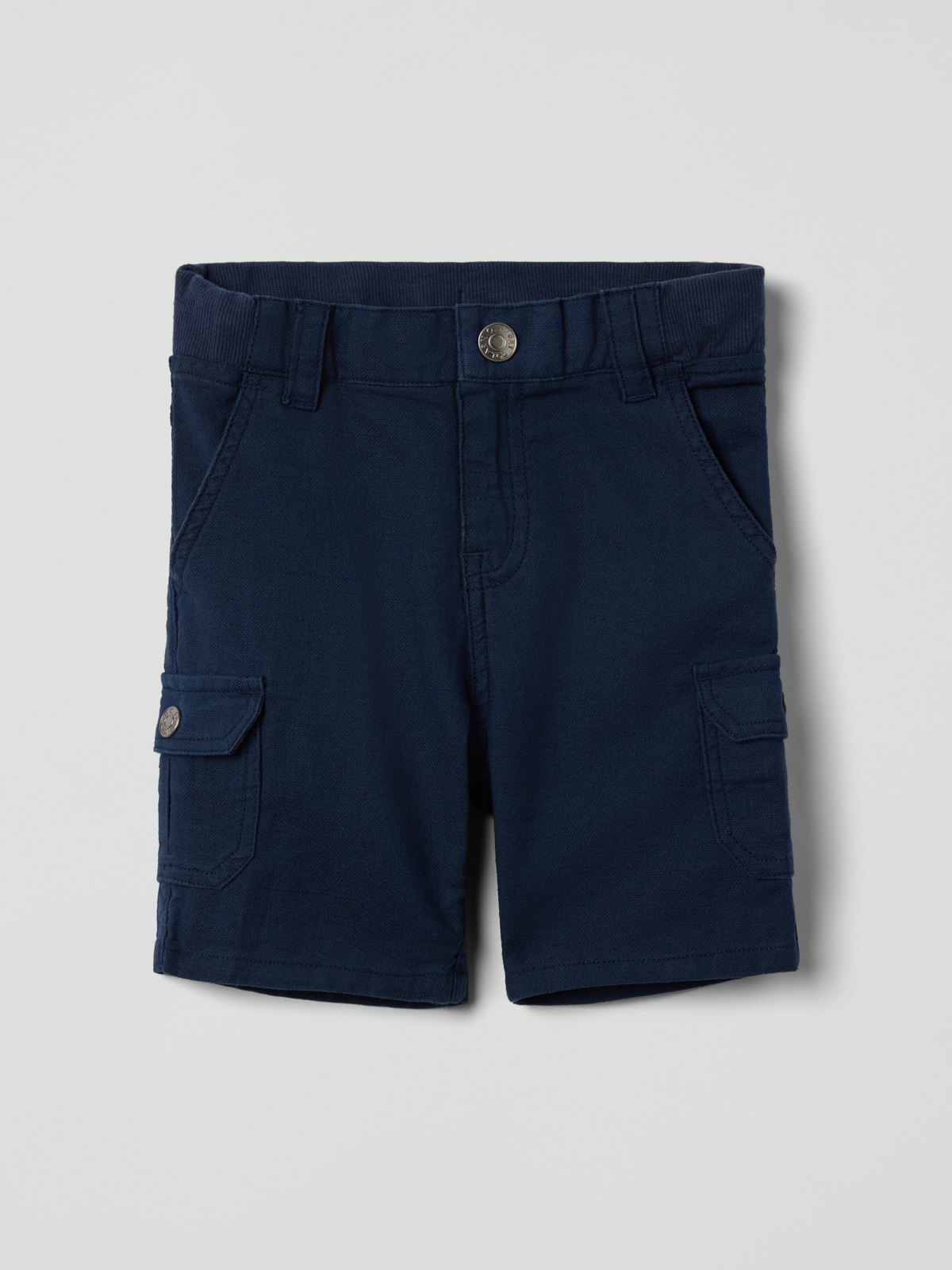 Mjuka cargoshorts i 100 % ekologisk bomull – perfekta för härliga sommaräventyr! Shortsen har förböjda knän för skön passform och uppvikbara benslut. De har fickor fram och bak, samt två benfickor som stängs med tryckknapp.