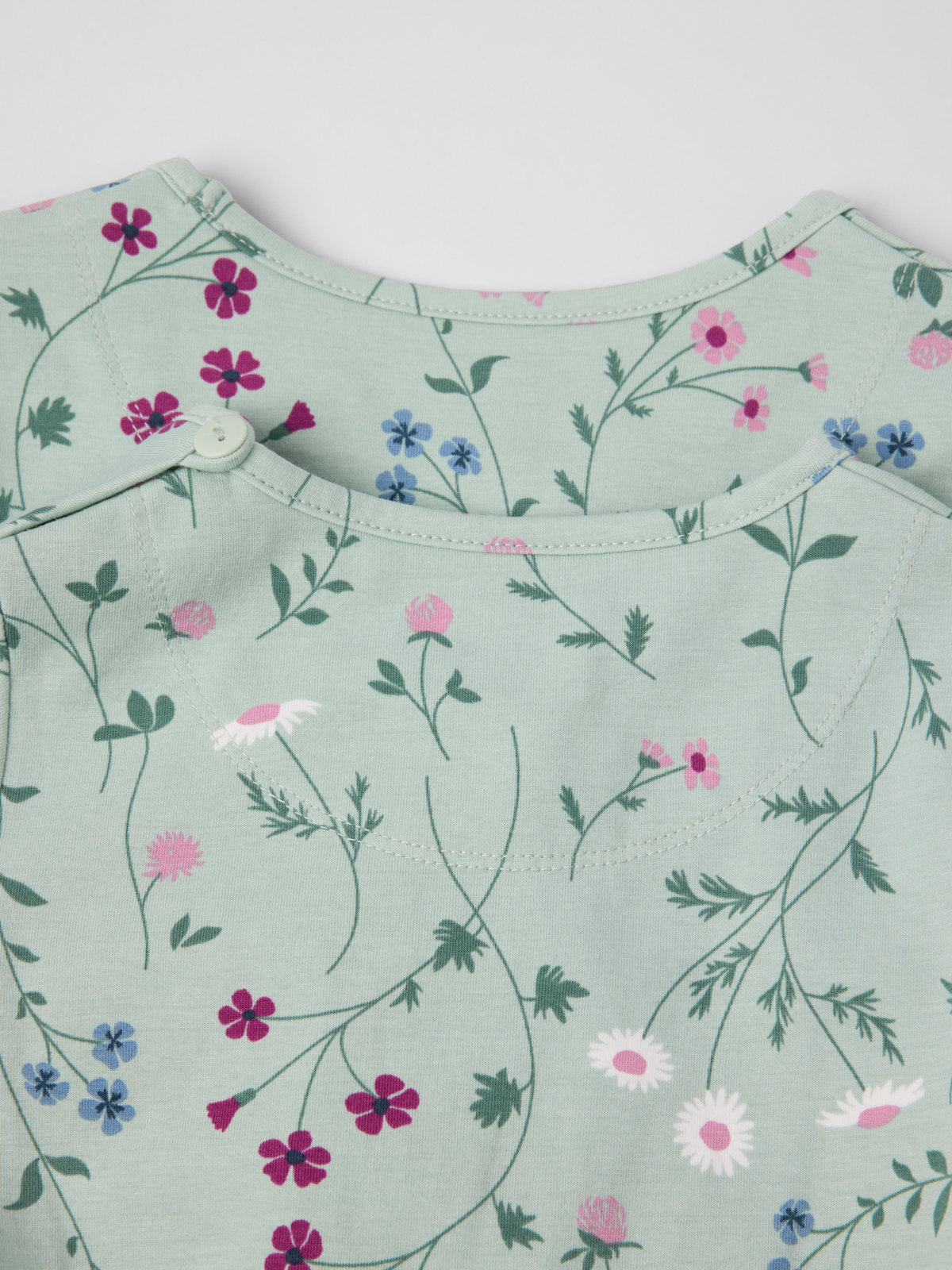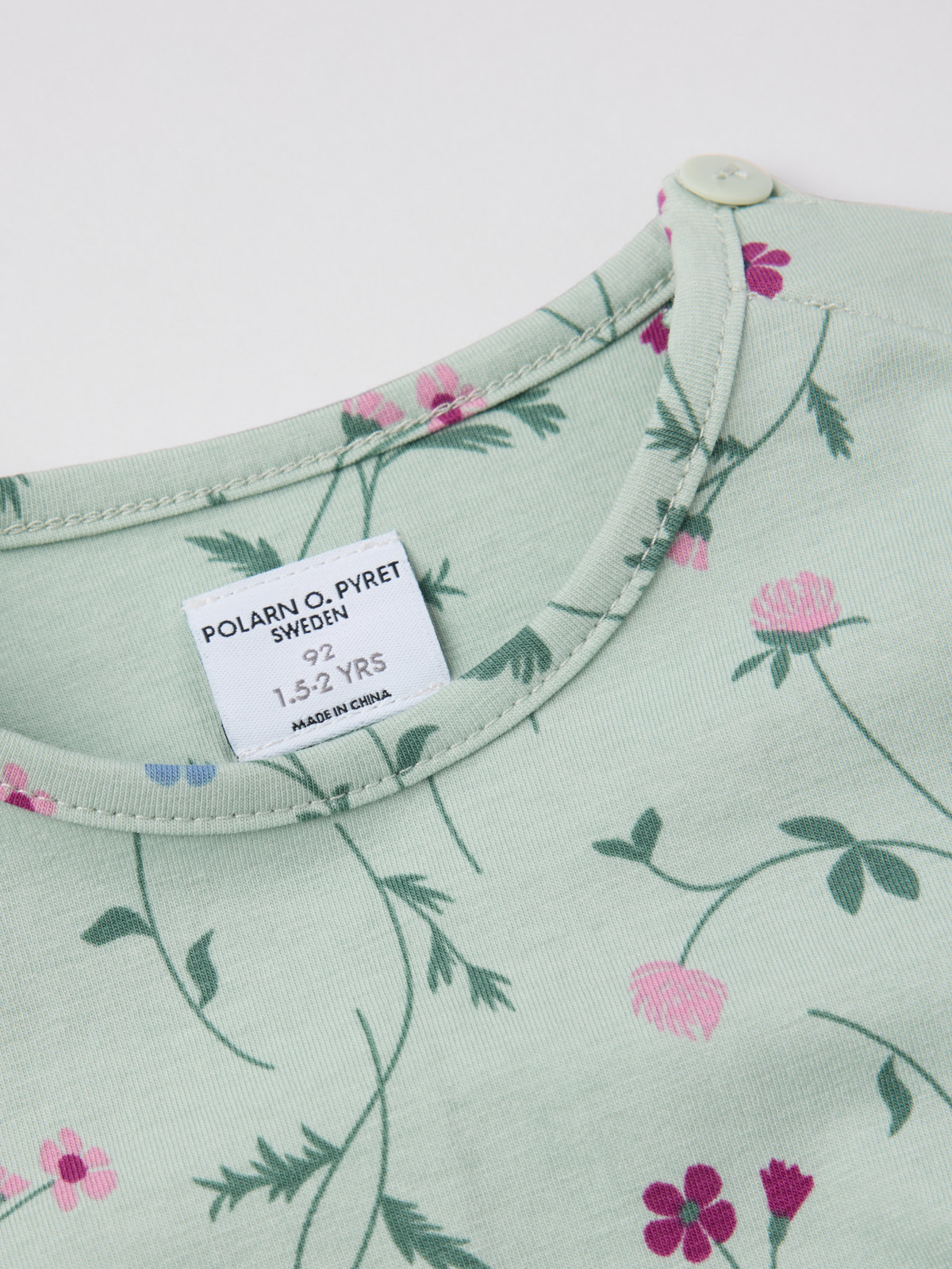 Storlekarna 86-92 har tryckknappar bak på ena axeln för att underlätta klädbyten.