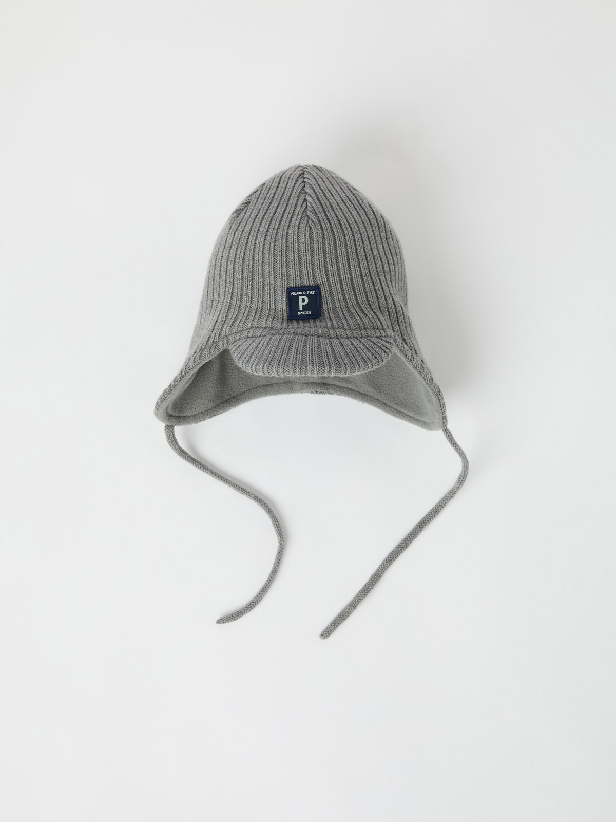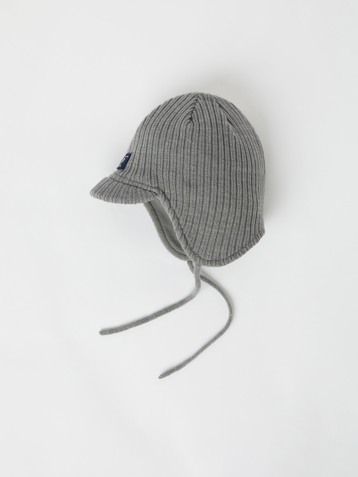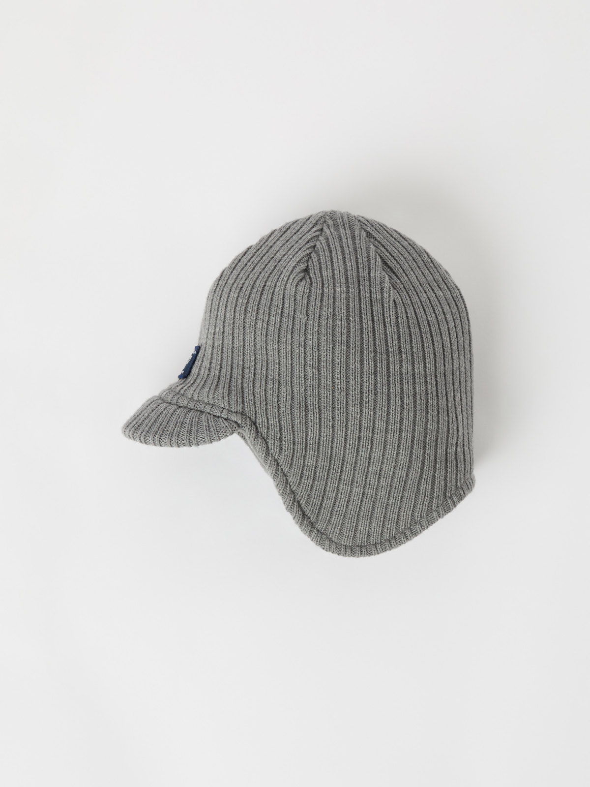 Ribbstickad mössa i varm ull med mjukt fleecefoder av återvunnen polyester. Framtill har mössan en skärm som ger ett skönt skydd mot väder vind. De minsta storlekarna har knytband under hakan som håller mössan på plats.