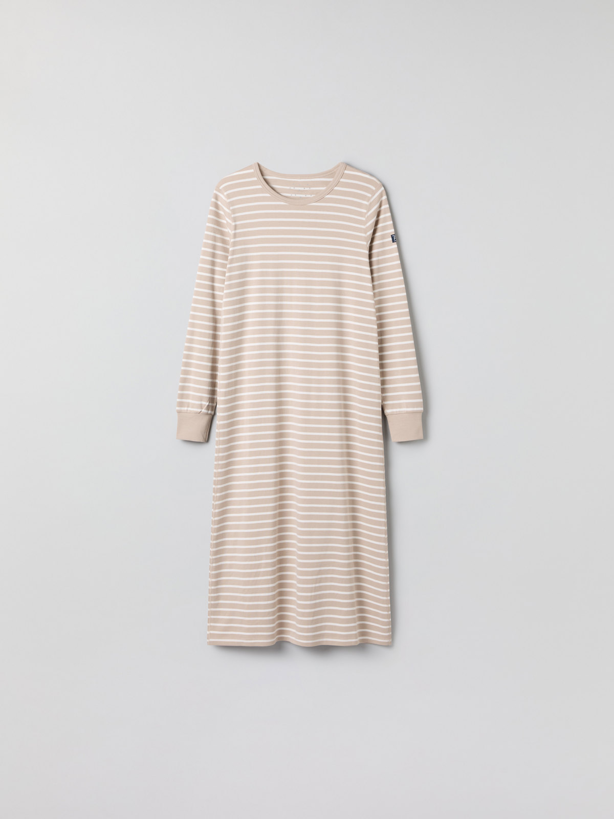 Mjukt och skönt nattlinne i 100 % ekologisk bomull, i vuxenstorlekar. Nattlinnet har vår klassiska rand och mjuk mudd vid ärmslut.