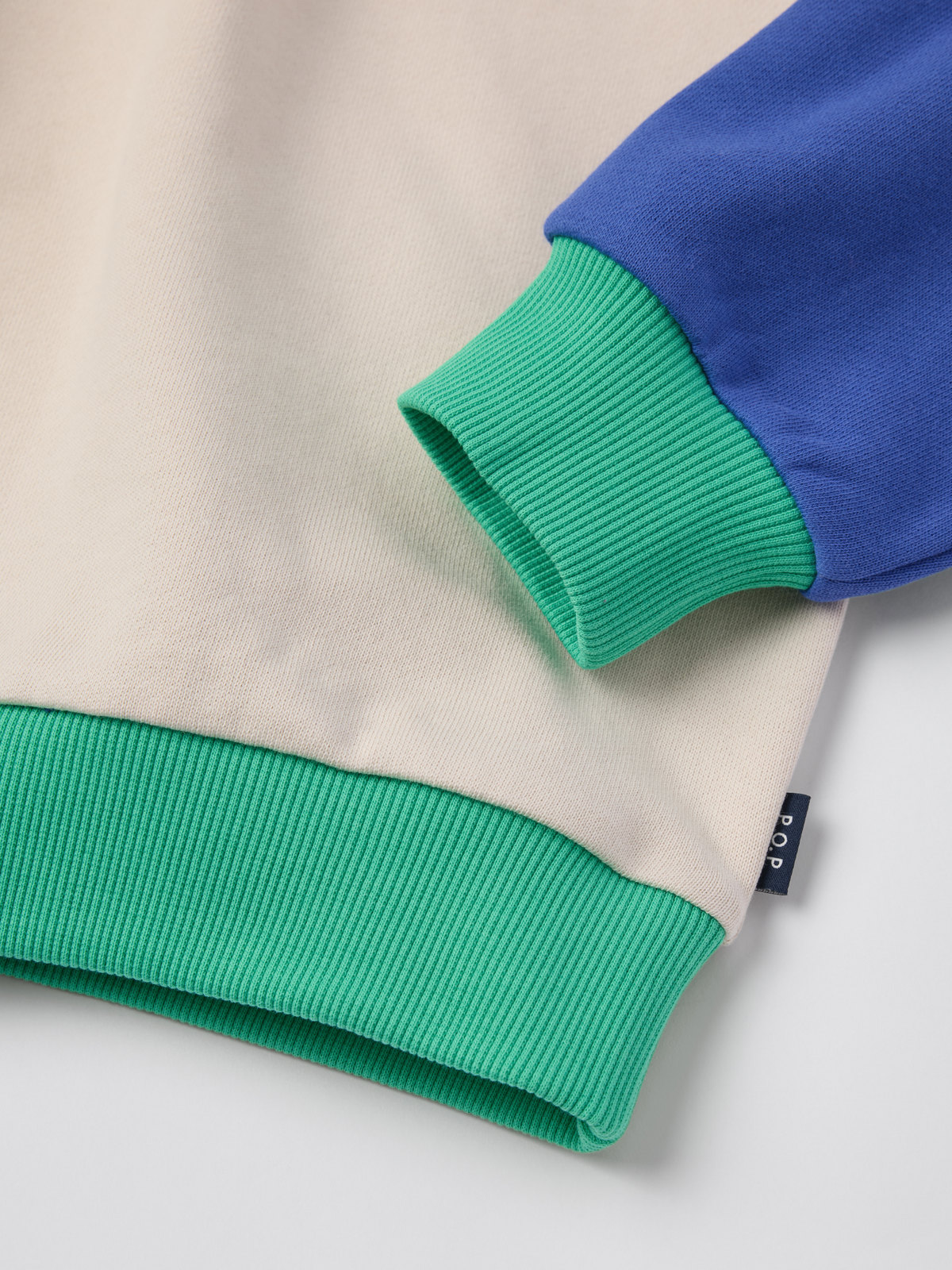 Tröja i 100 % ekologisk bomull med mjuk sweatshirtkvalitet. Tröjan har kontrastfärgade detaljer, en liten PO.P-brodyr på bröstet samt mjuka muddar i hals, ärmslut och nederkant för skön passform.