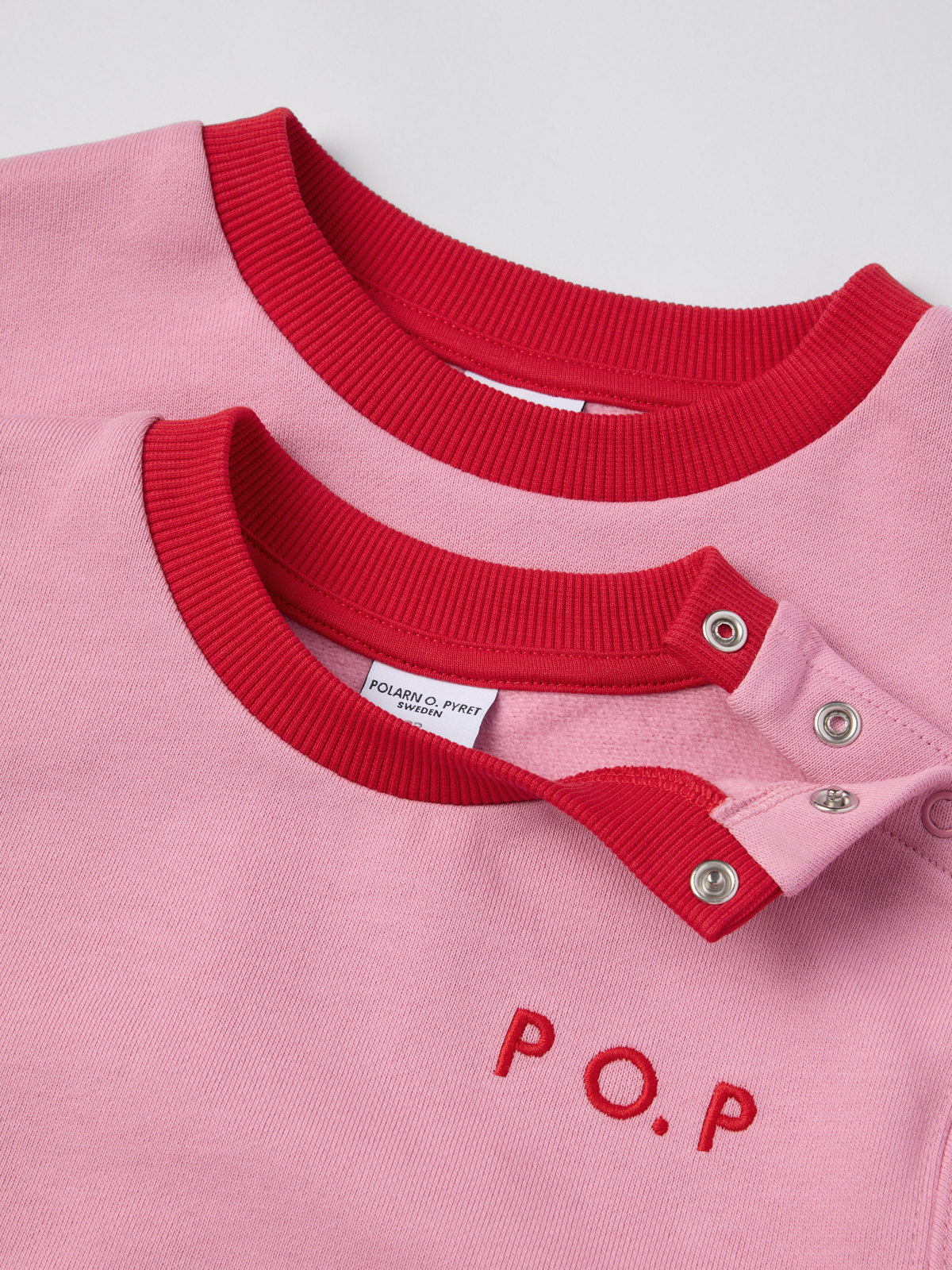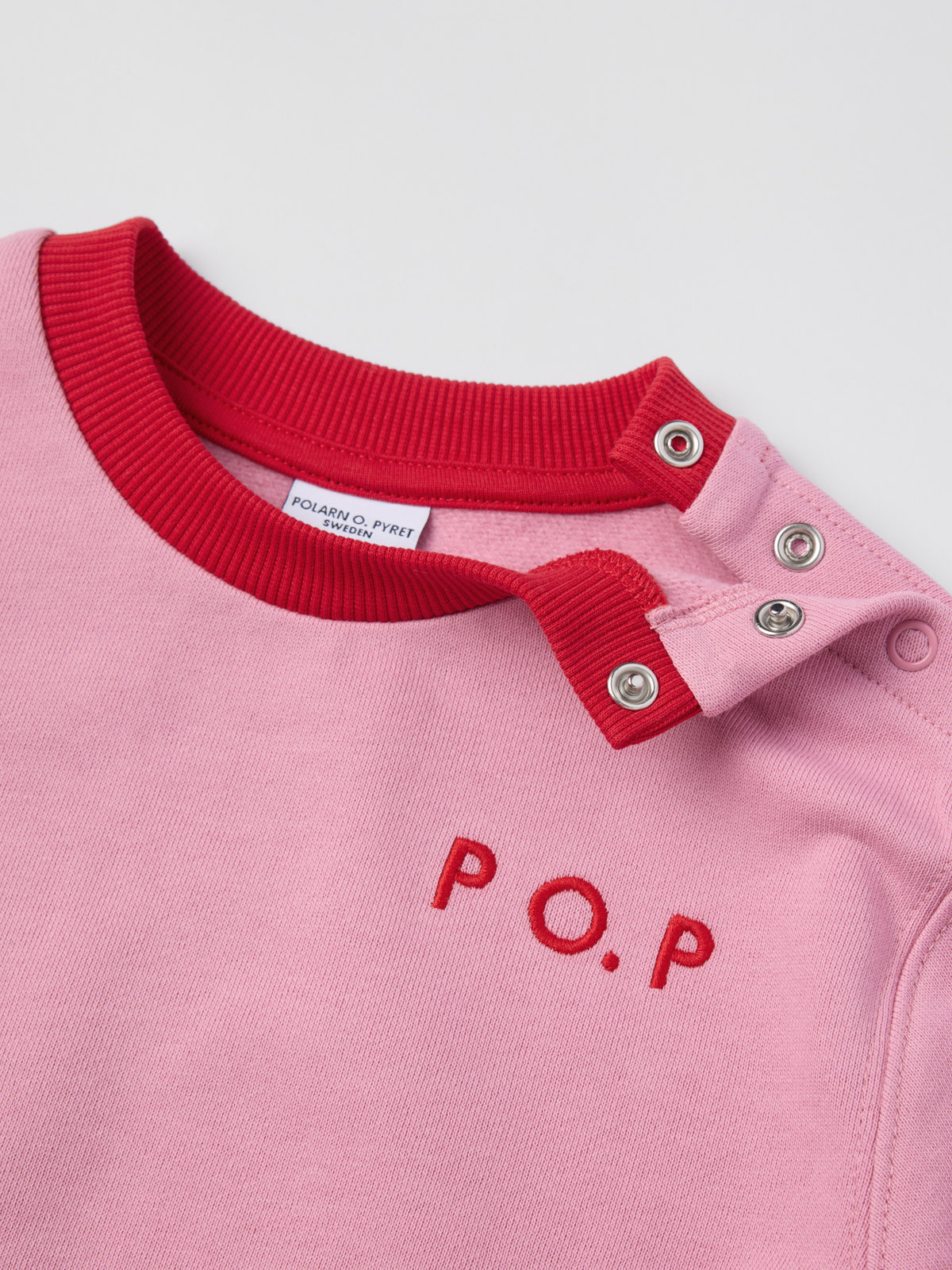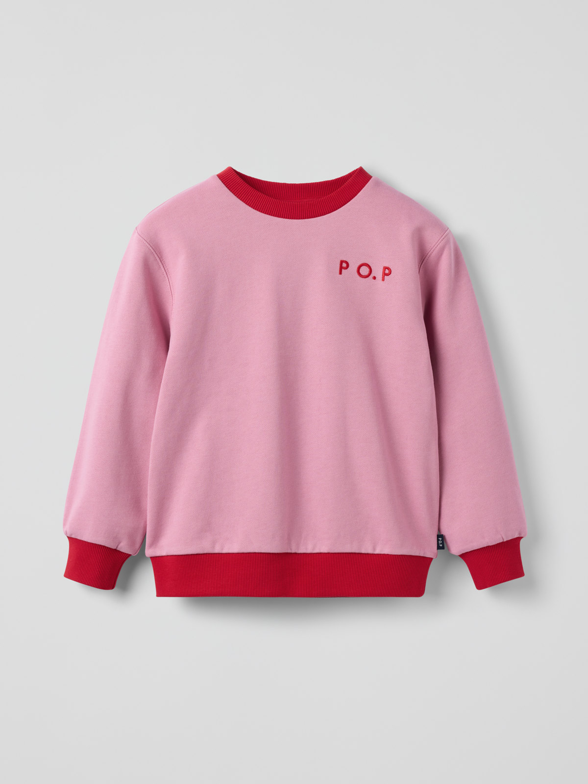 Tröja i 100 % ekologisk bomull med mjuk sweatshirtkvalitet. Tröjan har kontrastfärgade detaljer, en liten PO.P-brodyr på bröstet samt mjuka muddar i hals, ärmslut och nederkant för skön passform.