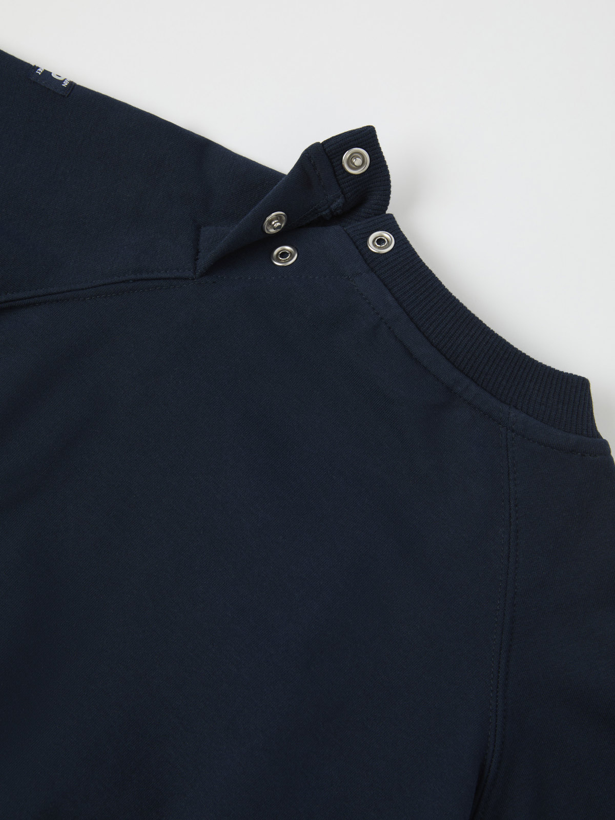Tröjan har ribbad mudd i halsringning och ärmslut.