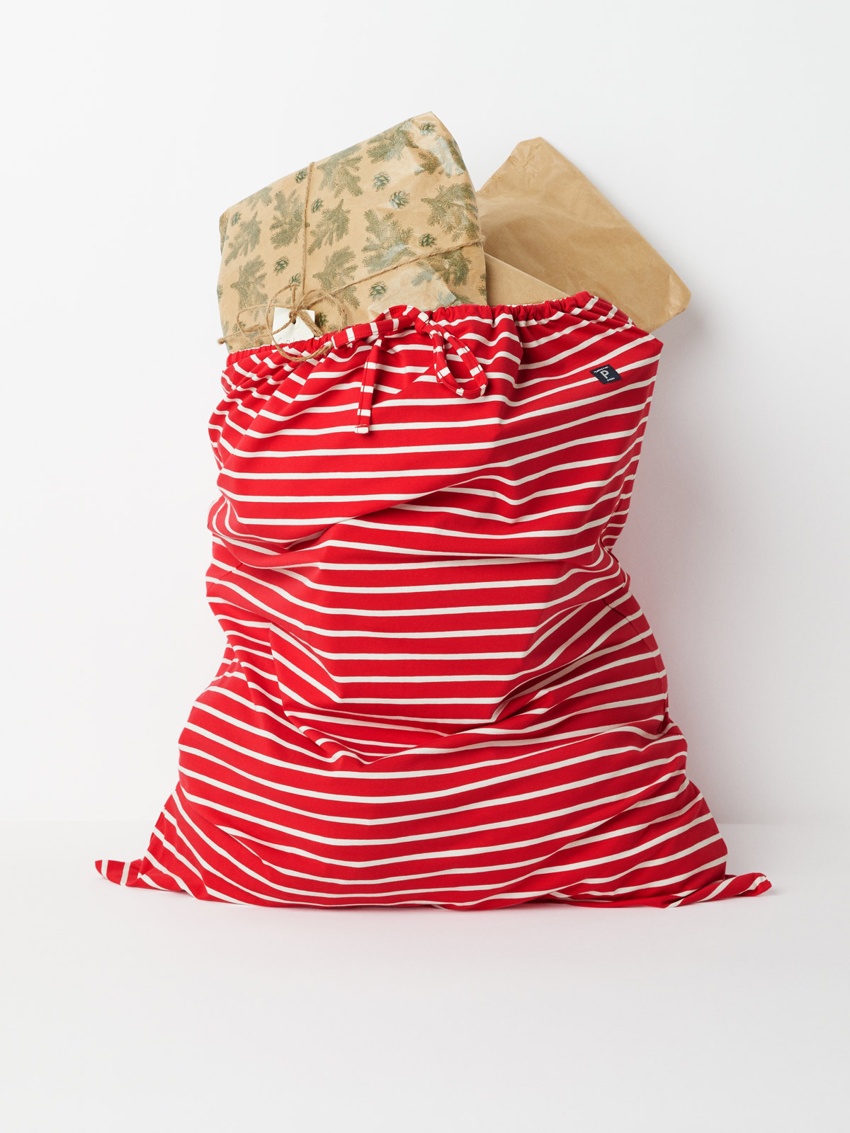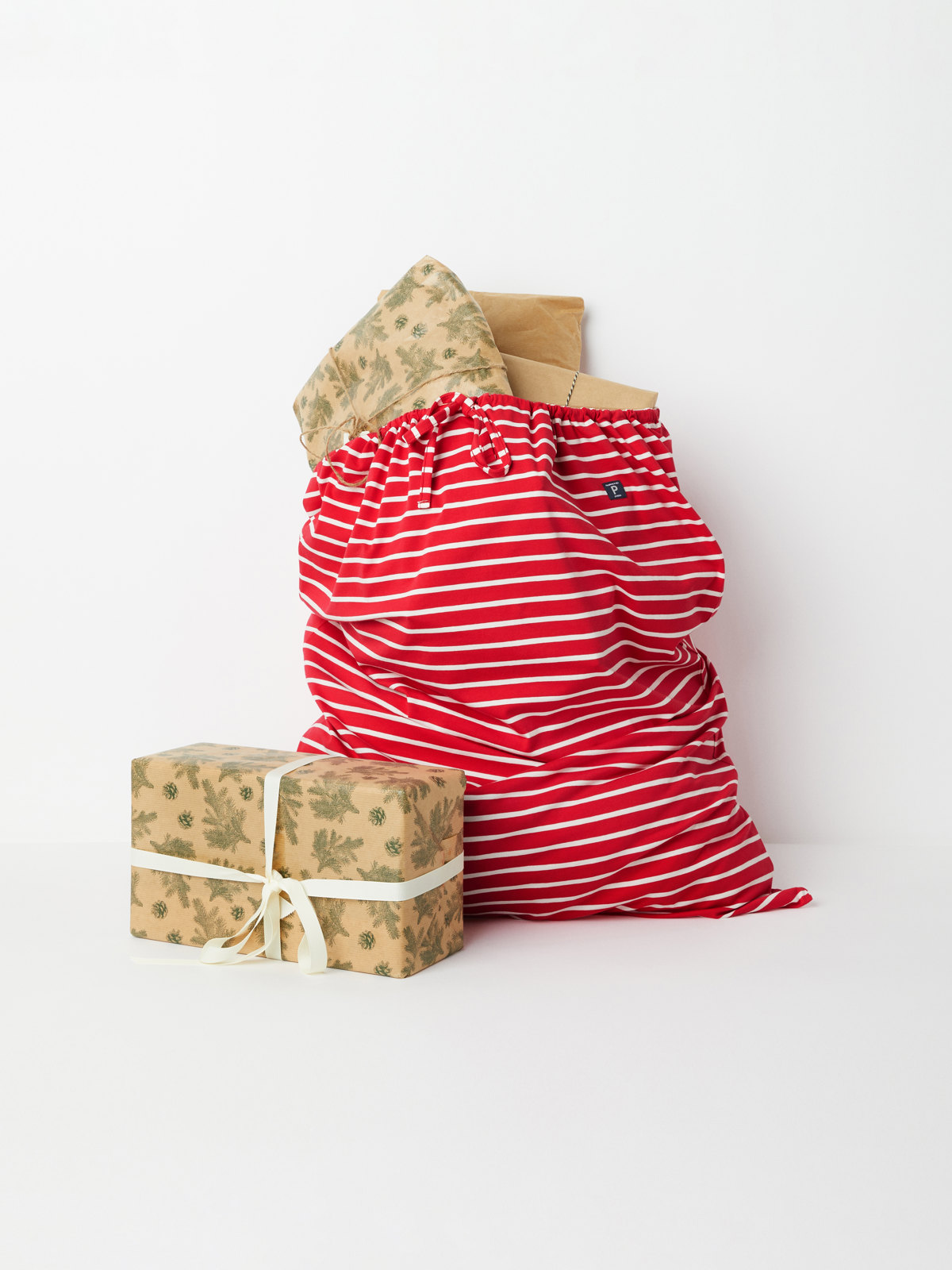 Nyhet! En perfekt tomtesäck för julens klappar! Påsen är tillverkad i mjuk ekologisk bomull och har vår klassiska rand.
