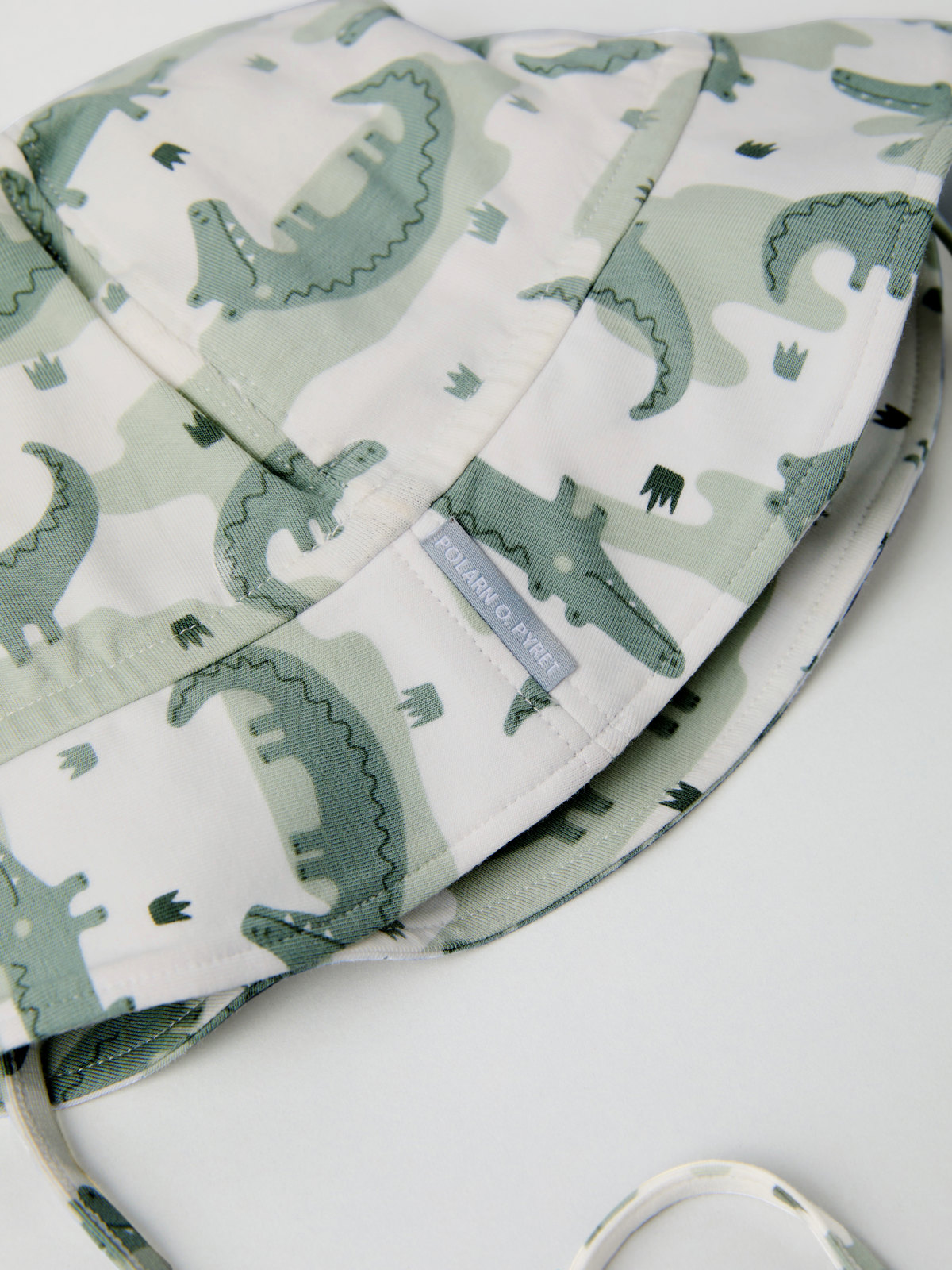 Solhatt i 100% ekologisk bomull – ett måste för de små i solen! Solhatten är helmönstrad med krokodiler och har ett mjukt knytband som håller den på plats.
