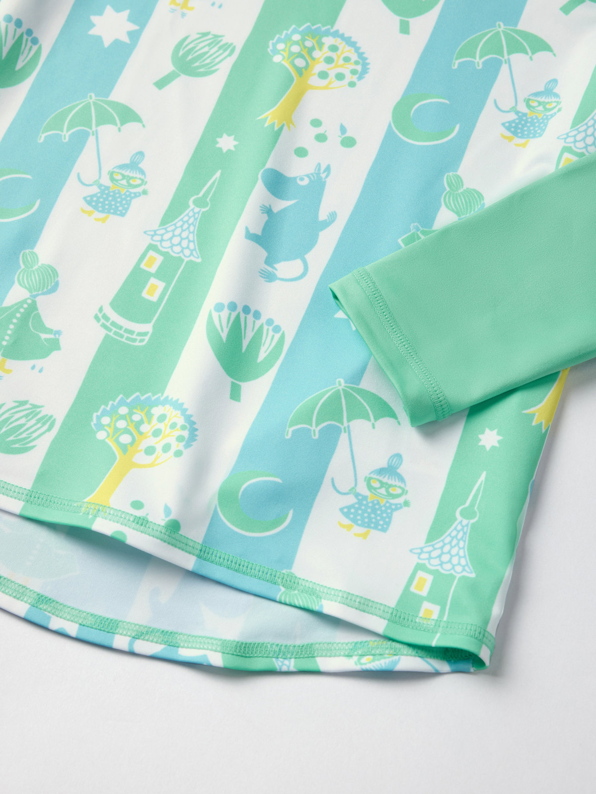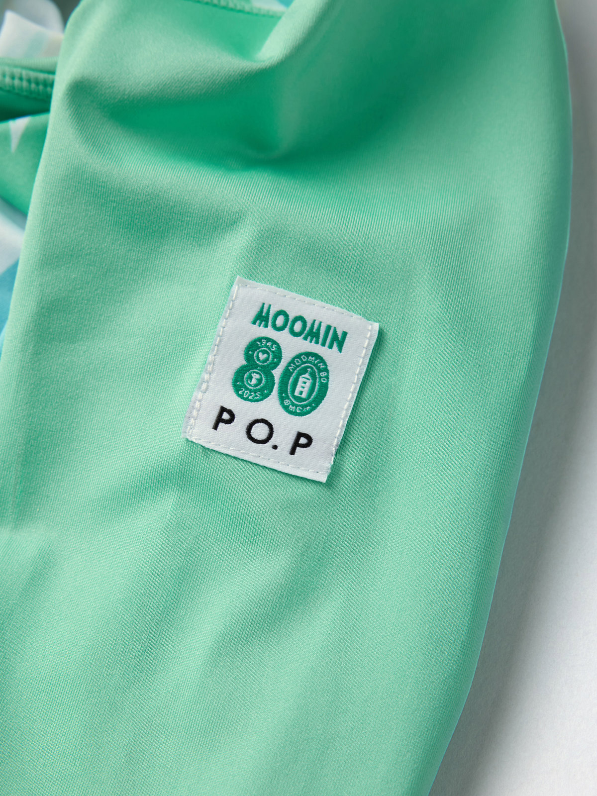 Långärmad UV-tröja med UPF 50, tillverkad i mjukt och skönt material av återvunnen polyester. Plagget är en del av vår limiterade kollektion för att fira Mumins 80-årsjubileum. Exklusivt för jubileumsåret 2025 är att mumintrollen återigen får synas i färg – för första gången sedan 1956.