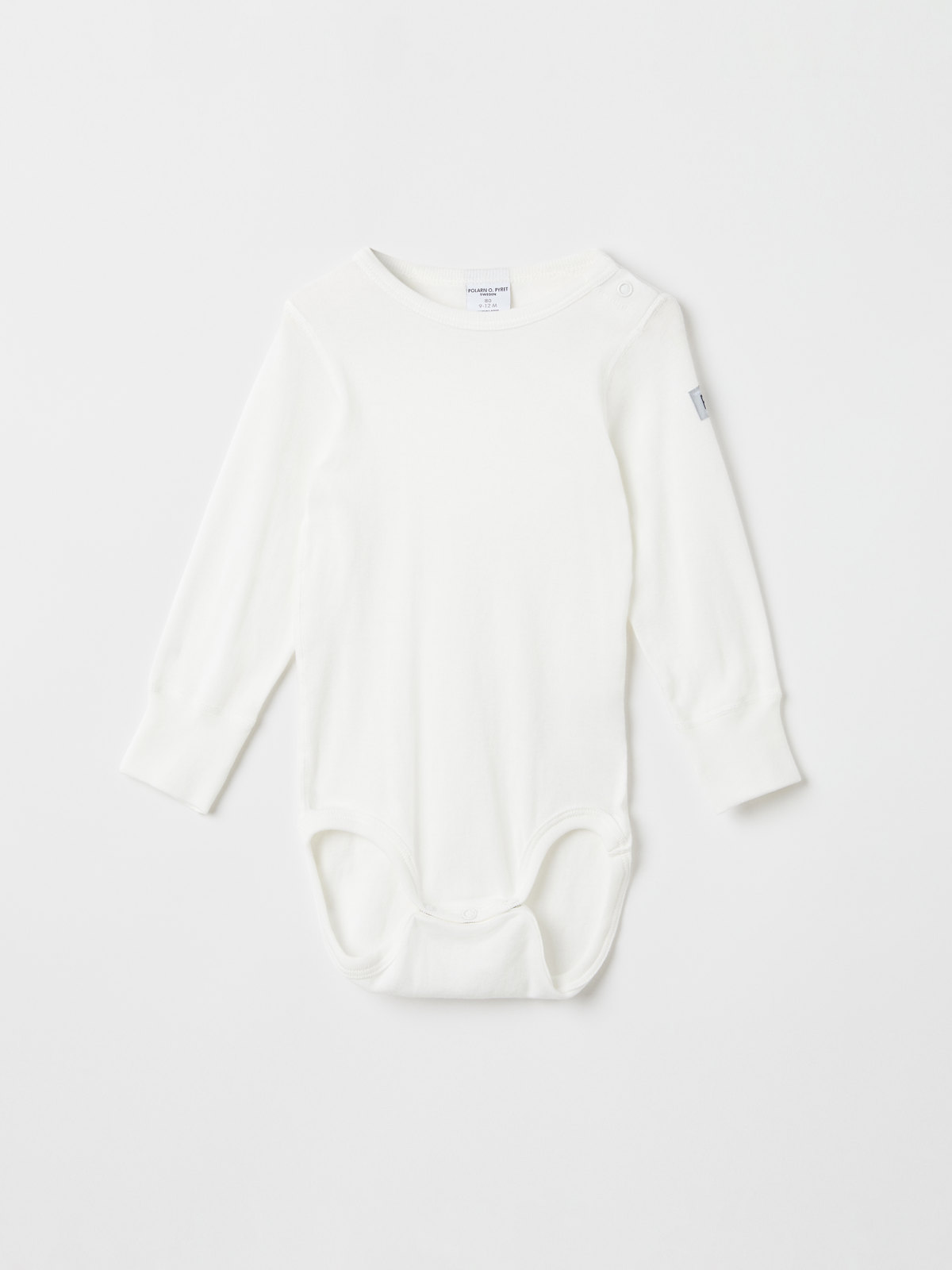 Enfärgad body för baby, i ekologisk bomull. Tryckknappar på axlarna och i grenen för lättare påklädning och blöjbyte.