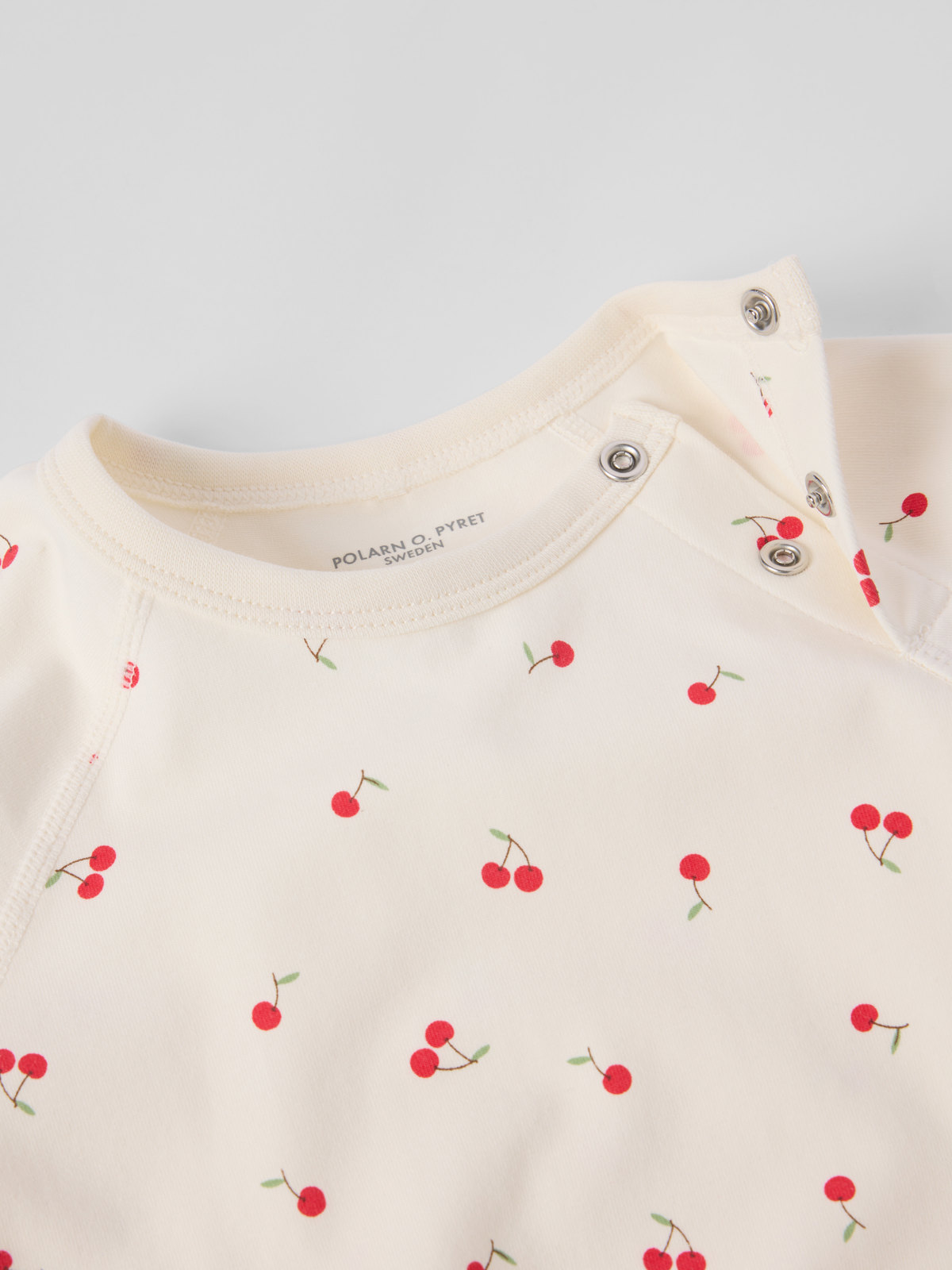 Förlängningsbar body i ekologisk bomull – tack vare den smarta lösningen med en extra rad tryckknappar i grenen och nedvikbar mudd vid ärmsluten kan bodyn växa tillsammans med bebisen!