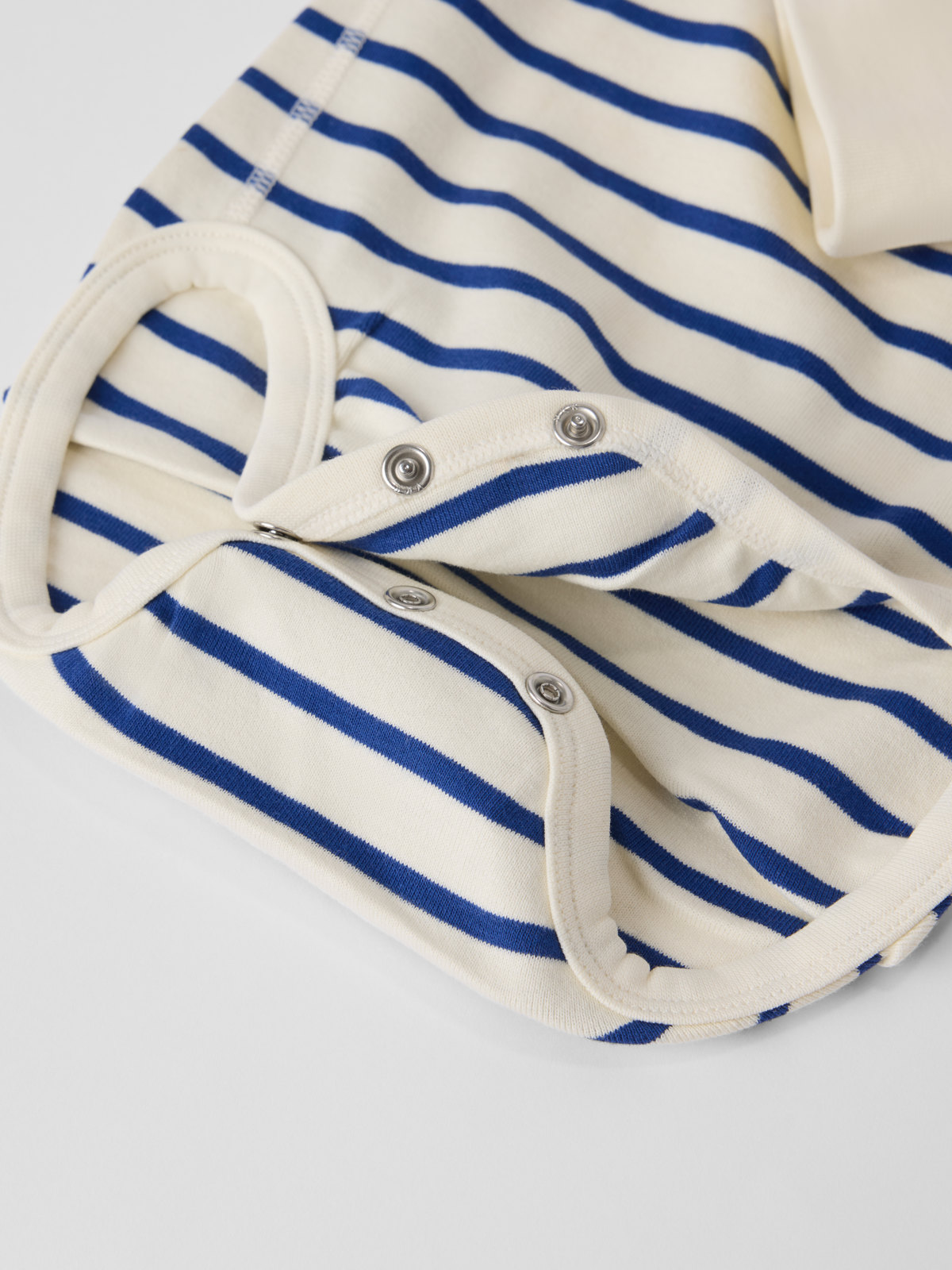 Ribbad förlängningsbar body i ekologisk bomull – som tack vare den smarta lösningen med en extra rad tryckknappar i grenen och nedvikbar mudd vid ärmsluten kan växa tillsammans med bebisen!