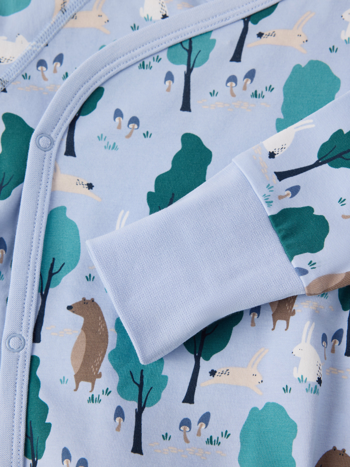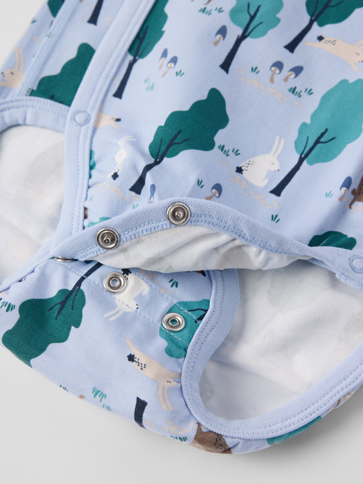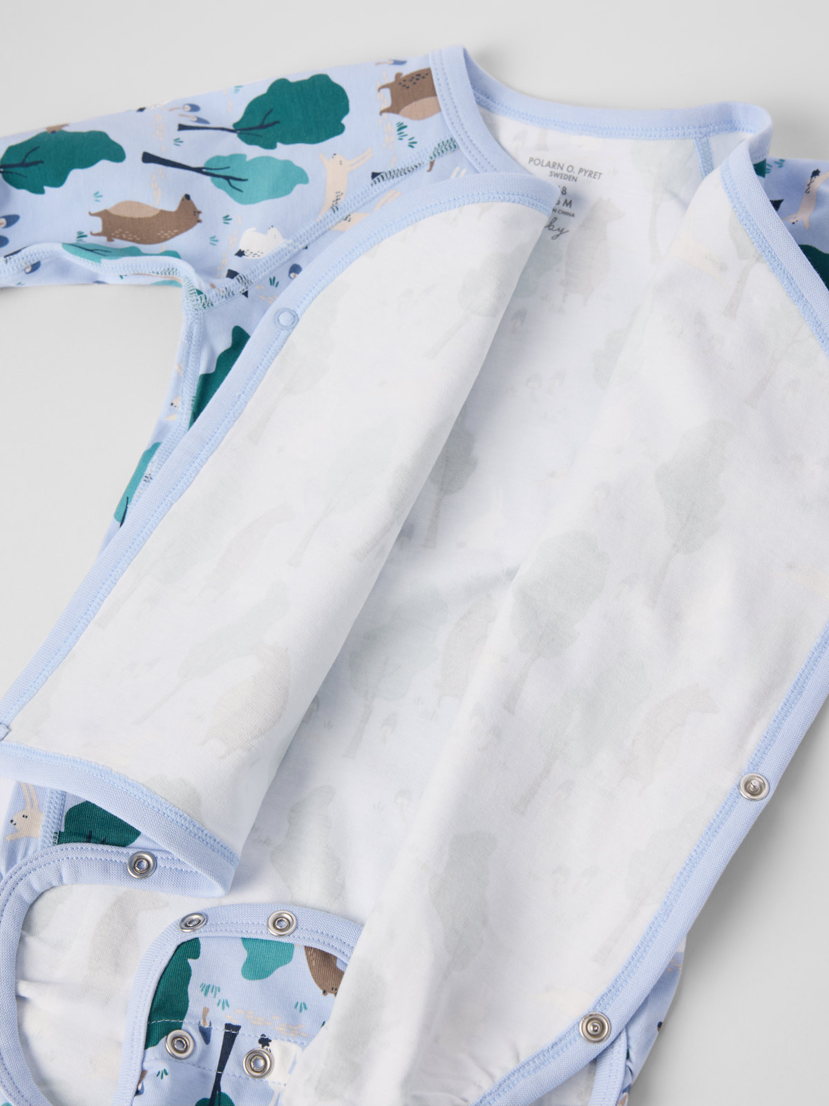 Förlängningsbar omlottbody i 100 % ekologisk bomull. Tack vare den smarta lösningen med en extra rad tryckknappar i grenen och nedvikbar mudd vid ärmsluten kan bodyn växa tillsammans med bebisen!